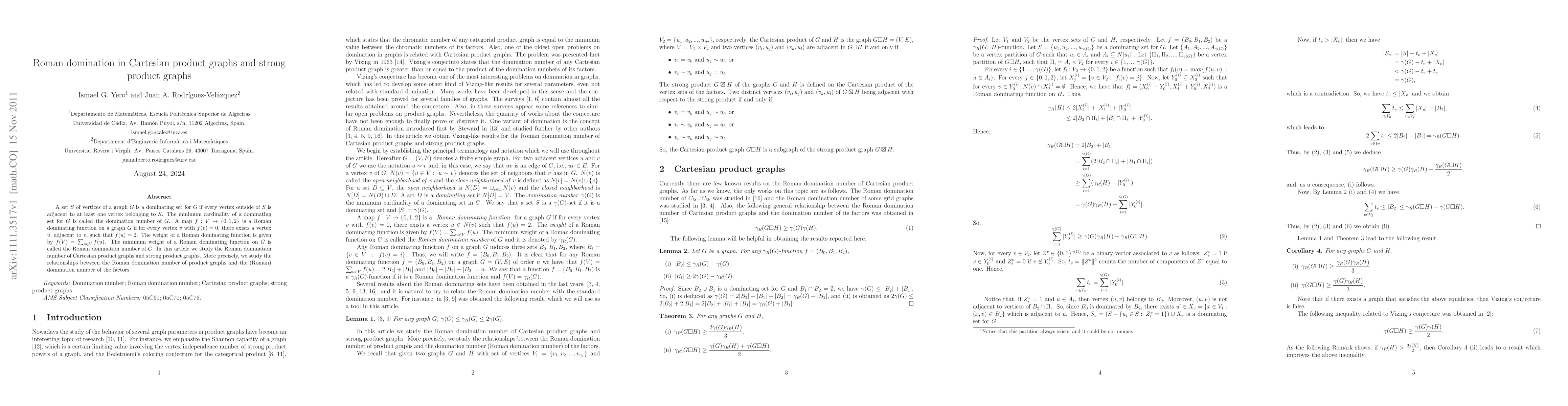 This paper investigates the Roman domination number in Cartesian and strong product graphs, defining Roman dominating functions and exploring relationships between the Roman domination number of product graphs and the domination numbers of their factors.