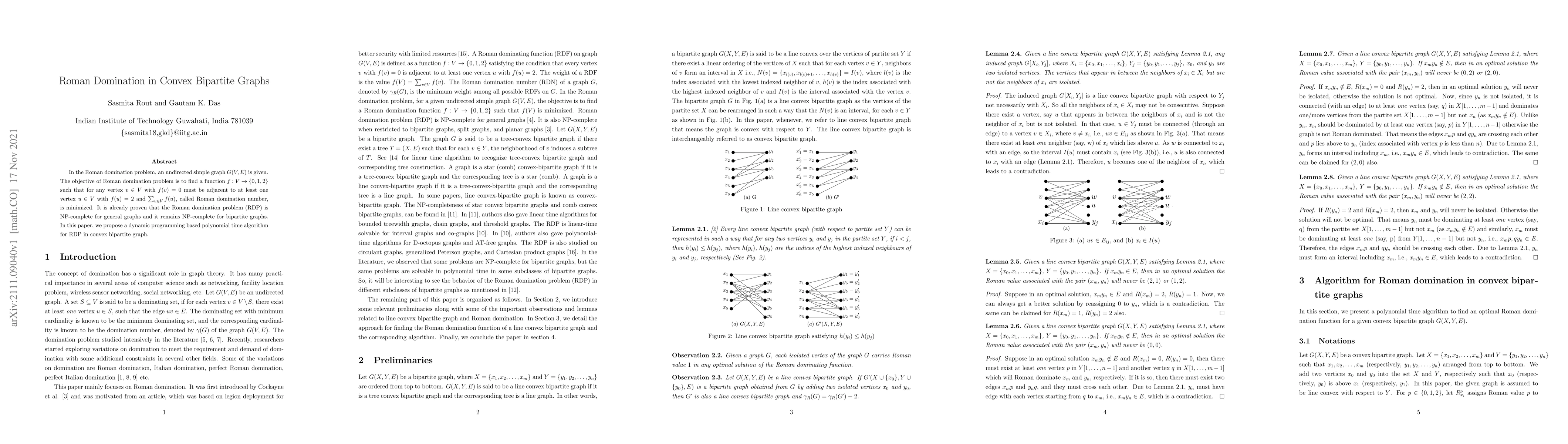 This paper presents a dynamic programming algorithm to solve the Roman domination problem (RDP) efficiently in convex bipartite graphs, proving that while RDP remains NP-complete for general and bipartite graphs, it can be solved in polynomial time for this specific subclass.