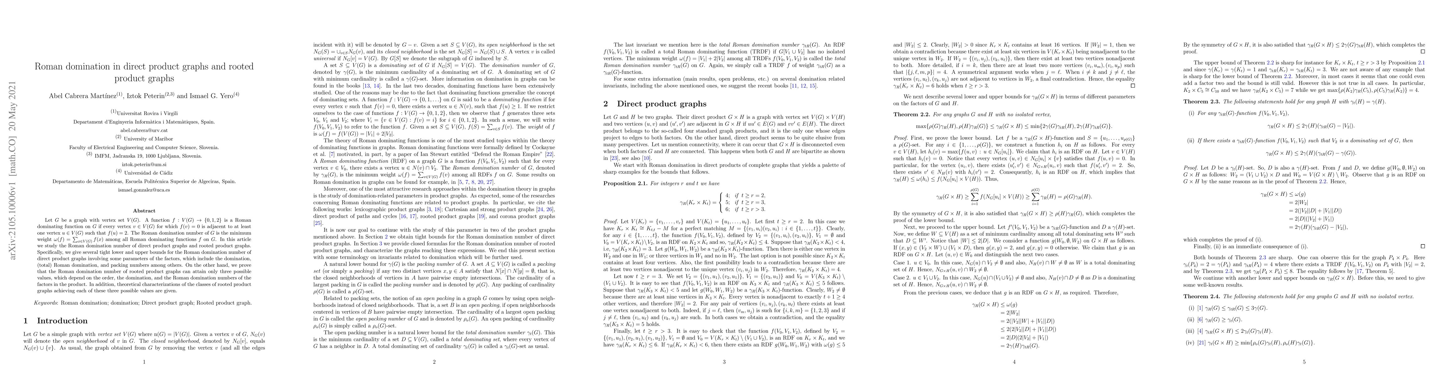 The paper studies Roman domination in direct product graphs and rooted product graphs, providing tight lower and upper bounds for direct product graphs and characterizing rooted product graphs with three possible Roman domination numbers.