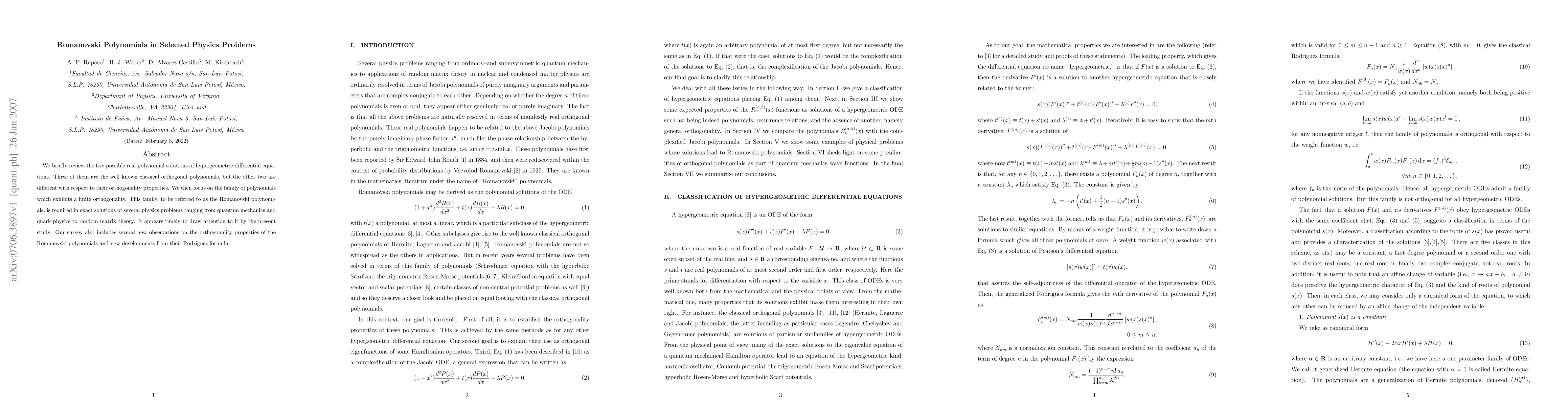 This paper reviews five real polynomial solutions of hypergeometric differential equations, highlighting the Romanovski polynomials which exhibit finite orthogonality and are crucial in solving various physics problems, including quantum mechanics and quark physics. The study also presents new insights into their orthogonality properties and developments from their Rodrigues formula.