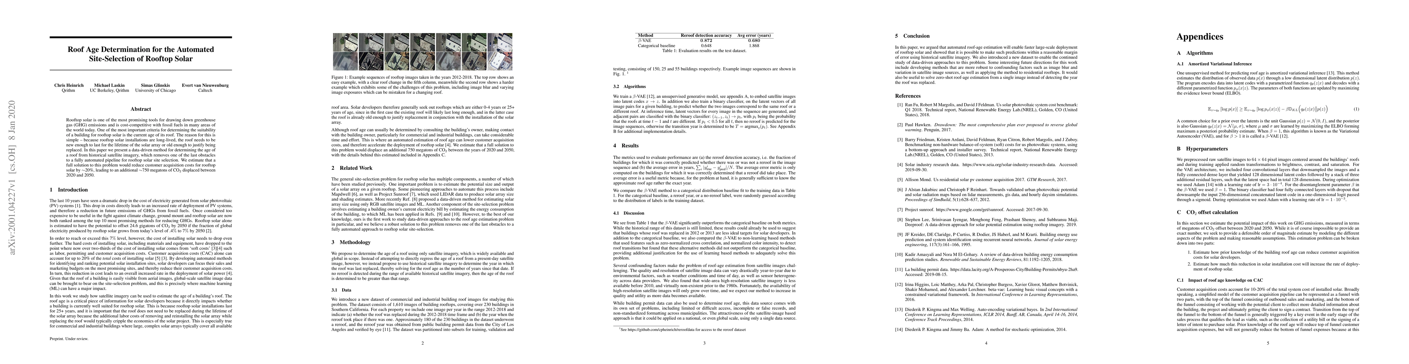 Rooftop solar is one of the most promising tools for drawing down greenhouse gas (GHG) emissions and is cost-competitive with fossil fuels in many areas of the world today. One of the most important criteria for determining the suitability of a building for rooftop solar is the current age of its roof. The reason for this is simple -- because rooftop solar installations are long-lived, the roof needs to be new enough to last for the lifetime of the solar array or old enough to justify being replaced. In this paper we present a data-driven method for determining the age of a roof from historical satellite imagery, which removes one of the last obstacles to a fully automated pipeline for rooftop solar site selection. We estimate that a full solution to this problem would reduce customer acquisition costs for rooftop solar by $\sim$20\%, leading to an additional $\sim$750 megatons of CO$_2$ displaced between 2020 and 2050.