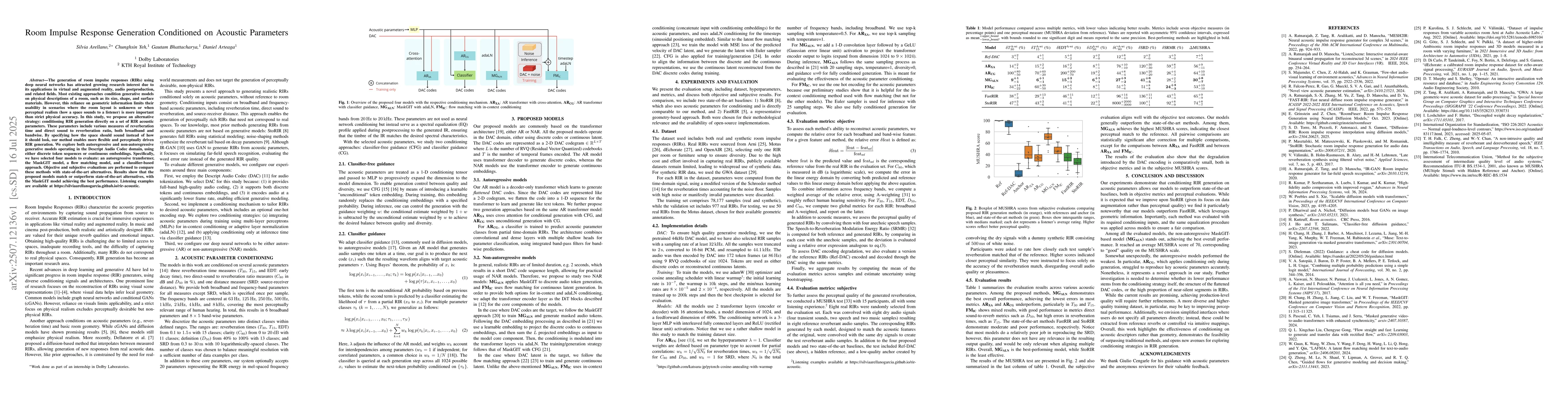The generation of room impulse responses (RIRs) using deep neural networks has attracted growing research interest due to its applications in virtual and augmented reality, audio postproduction, and related fields. Most existing approaches condition generative models on physical descriptions of a room, such as its size, shape, and surface materials. However, this reliance on geometric information limits their usability in scenarios where the room layout is unknown or when perceptual realism (how a space sounds to a listener) is more important than strict physical accuracy. In this study, we propose an alternative strategy: conditioning RIR generation directly on a set of RIR acoustic parameters. These parameters include various measures of reverberation time and direct sound to reverberation ratio, both broadband and bandwise. By specifying how the space should sound instead of how it should look, our method enables more flexible and perceptually driven RIR generation. We explore both autoregressive and non-autoregressive generative models operating in the Descript Audio Codec domain, using either discrete token sequences or continuous embeddings. Specifically, we have selected four models to evaluate: an autoregressive transformer, the MaskGIT model, a flow matching model, and a classifier-based approach. Objective and subjective evaluations are performed to compare these methods with state-of-the-art alternatives. Results show that the proposed models match or outperform state-of-the-art alternatives, with the MaskGIT model achieving the best performance.