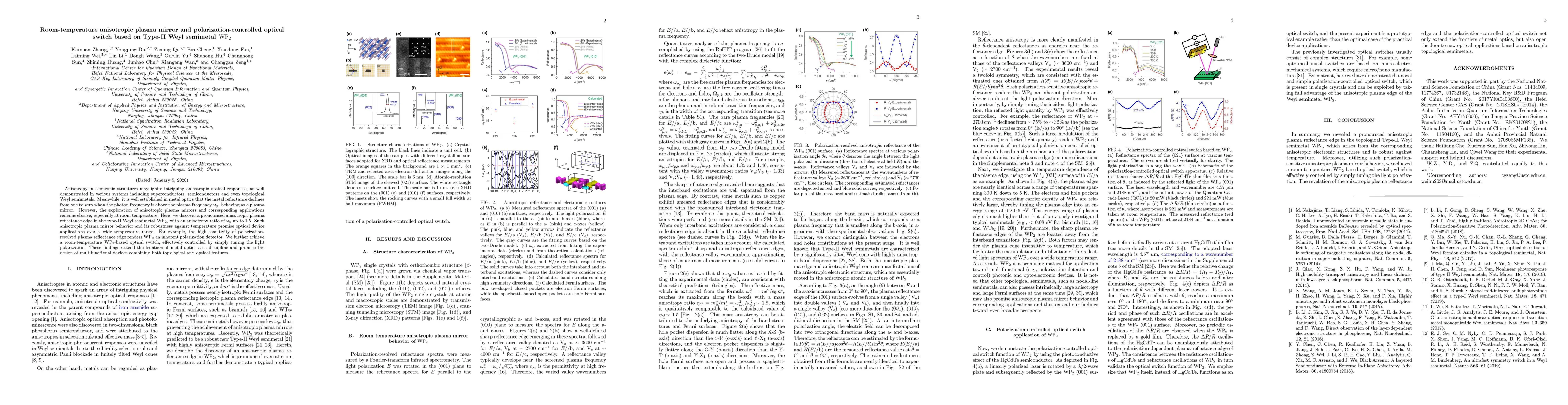 This paper reports the discovery of an anisotropic plasma mirror in type-II Weyl semimetal WP2, exhibiting a significant anisotropy ratio of up to 1.5 at room temperature. The material also enables a polarization-controlled optical switch, showcasing potential for multifunctional optical devices.