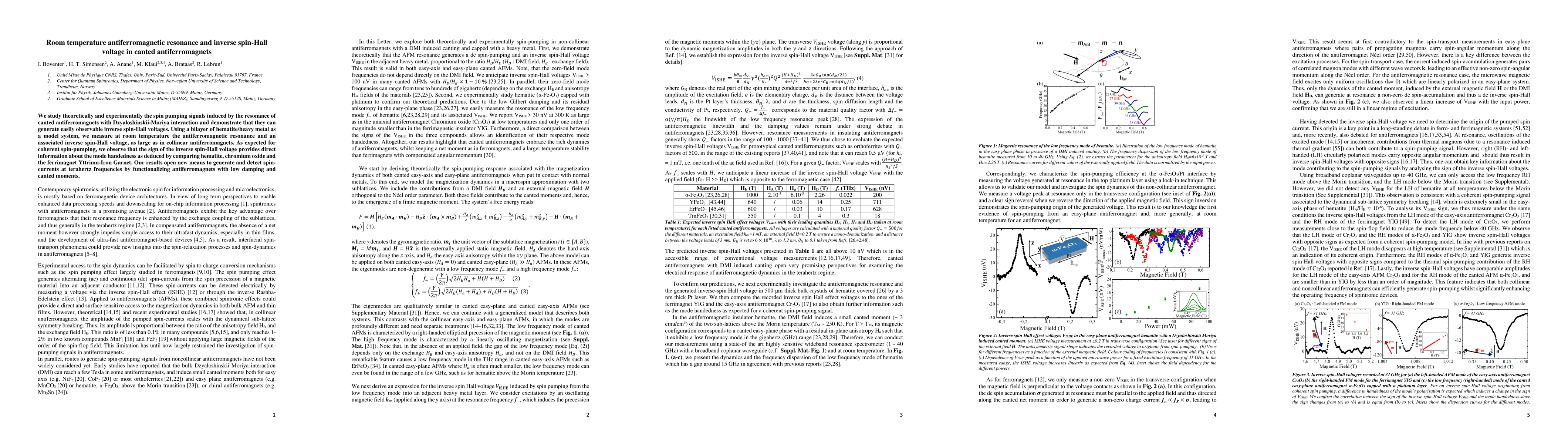 This paper investigates the spin pumping signals in canted antiferromagnets with Dzyaloshinskii-Moriya interaction, demonstrating their ability to generate observable inverse spin-Hall voltages at room temperature. The study combines theoretical and experimental results using a hematite/heavy metal bilayer, revealing significant inverse spin-Hall voltages and potential for terahertz spin-current generation.