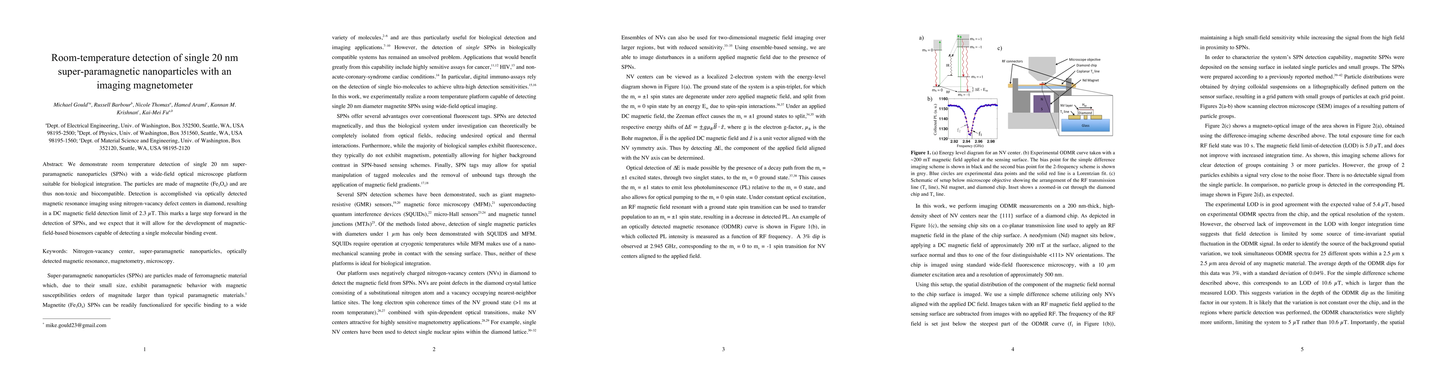 Researchers successfully detected single 20 nm super-paramagnetic nanoparticles at room temperature using a nitrogen-vacancy defect center in diamond, paving the way for magnetic-field-based biosensors.