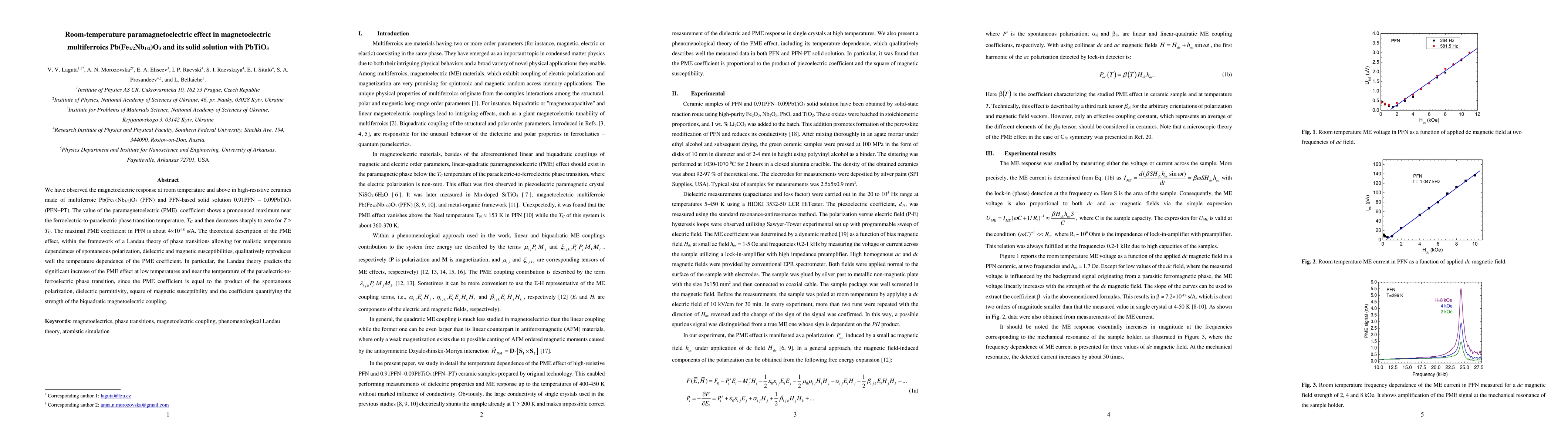 Researchers observed a room-temperature paramagnetoelectric effect in magnetoelectric multiferroics, with a maximal coefficient of about 4x10^-18 s/A. The effect increases at low temperatures near the phase transition temperature.