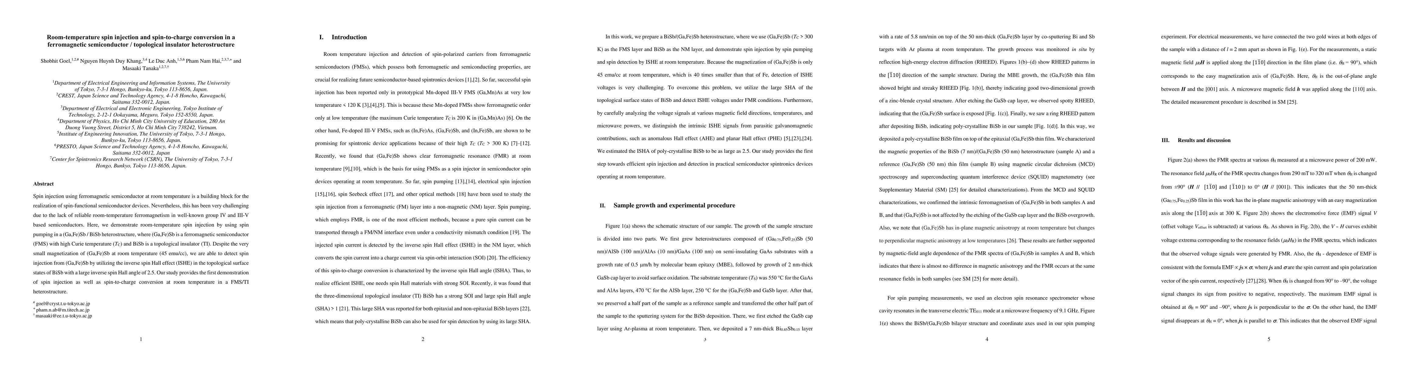 This paper demonstrates room-temperature spin injection using a ferromagnetic semiconductor/topological insulator heterostructure of (Ga,Fe)Sb/BiSb, achieving spin-to-charge conversion via the inverse spin Hall effect in BiSb's topological surface states, despite (Ga,Fe)Sb's low magnetization at room temperature.