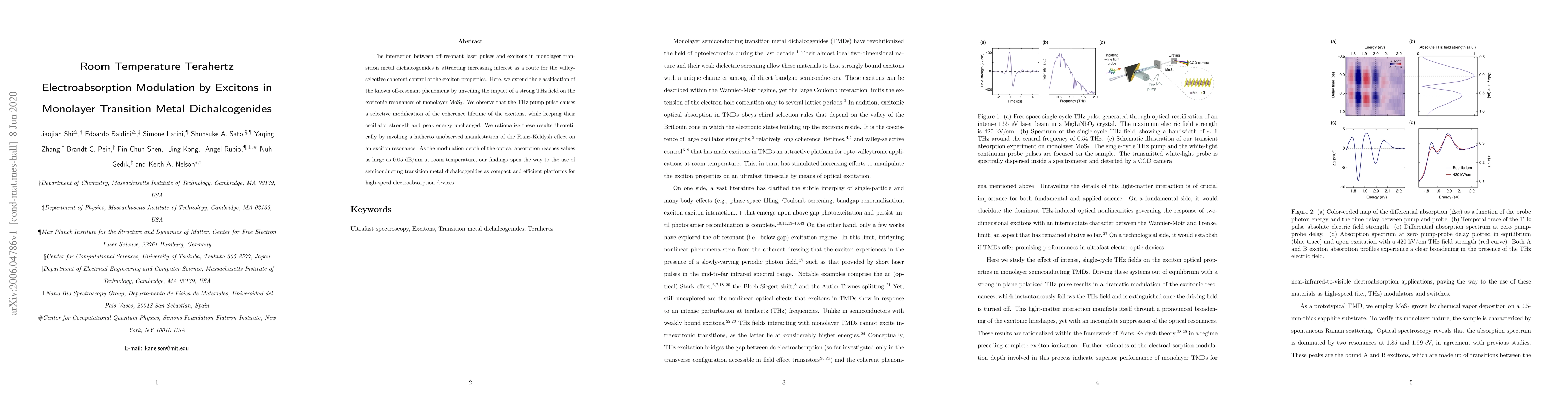 The interaction between off-resonant laser pulses and excitons in monolayer transition metal dichalcogenides is attracting increasing interest as a route for the valley-selective coherent control of the exciton properties. Here, we extend the classification of the known off-resonant phenomena by unveiling the impact of a strong THz field on the excitonic resonances of monolayer MoS$_2$. We observe that the THz pump pulse causes a selective modification of the coherence lifetime of the excitons, while keeping their oscillator strength and peak energy unchanged. We rationalize these results theoretically by invoking a hitherto unobserved manifestation of the Franz-Keldysh effect on an exciton resonance. As the modulation depth of the optical absorption reaches values as large as 0.05 dB/nm at room temperature, our findings open the way to the use of semiconducting transition metal dichalcogenides as compact and efficient platforms for high-speed electroabsorption devices.
