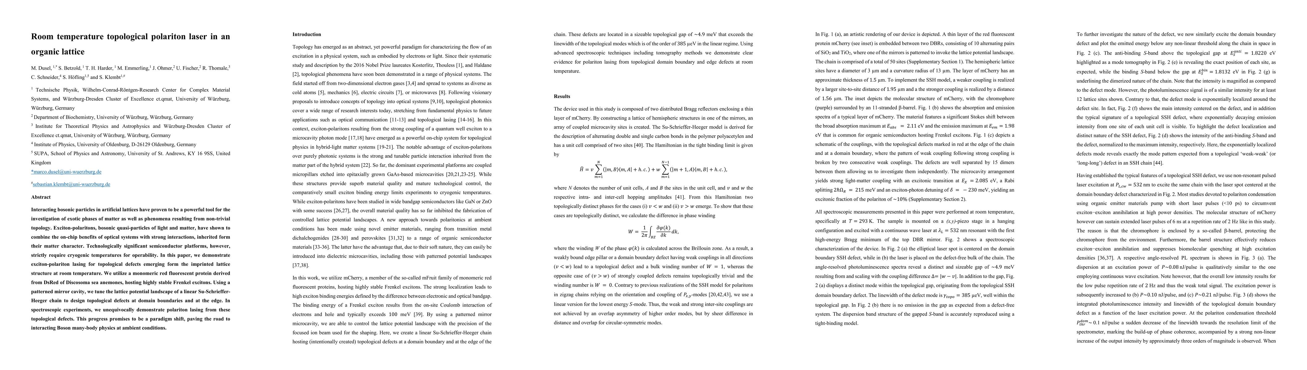 Researchers created a room-temperature laser using topological polaritons in an organic lattice, paving the way for studying exotic phases of matter at ambient conditions.