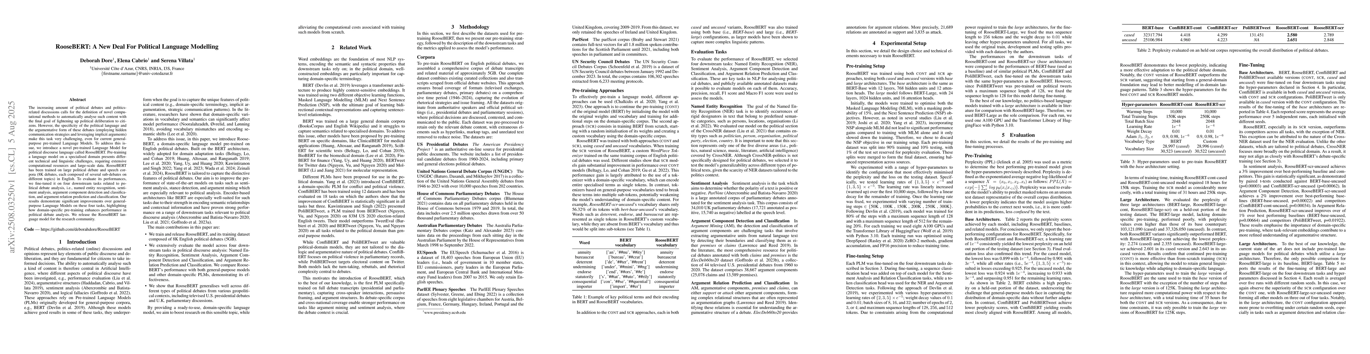 The increasing amount of political debates and politics-related discussions calls for the definition of novel computational methods to automatically analyse such content with the final goal of lightening up political deliberation to citizens. However, the specificity of the political language and the argumentative form of these debates (employing hidden communication strategies and leveraging implicit arguments) make this task very challenging, even for current general-purpose pre-trained Language Models. To address this issue, we introduce a novel pre-trained Language Model for political discourse language called RooseBERT. Pre-training a language model on a specialised domain presents different technical and linguistic challenges, requiring extensive computational resources and large-scale data. RooseBERT has been trained on large political debate and speech corpora (8K debates, each composed of several sub-debates on different topics) in English. To evaluate its performances, we fine-tuned it on four downstream tasks related to political debate analysis, i.e., named entity recognition, sentiment analysis, argument component detection and classification, and argument relation prediction and classification. Our results demonstrate significant improvements over general-purpose Language Models on these four tasks, highlighting how domain-specific pre-training enhances performance in political debate analysis. We release the RooseBERT language model for the research community.