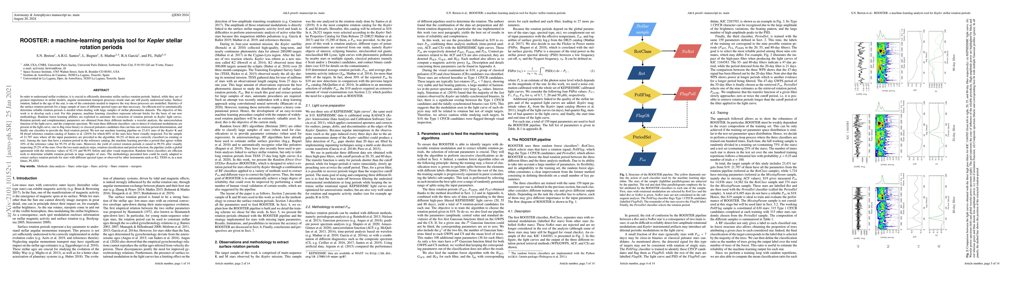ROOSTER, a machine-learning tool based on random forest classifiers, automates the extraction of stellar rotation periods from Kepler light curves, achieving 94.2% accuracy in classifying rotation presence and 95.3% agreement within 10% of reference periods, with further improvements after visual inspection.
