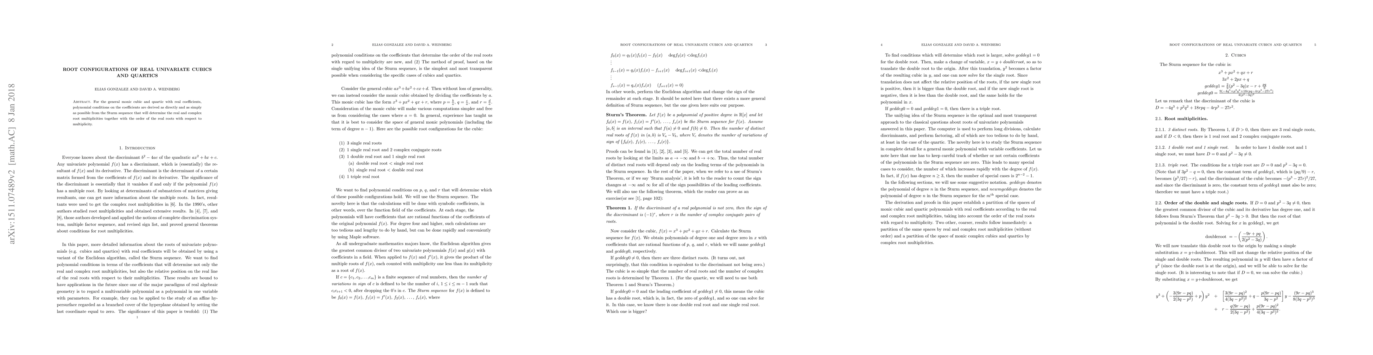 For the general monic cubic and quartic with real coefficients, polynomial conditions on the coefficients are derived as directly and as simply as possible from the Sturm sequence that will determine the real and complex root multiplicities together with the order of the real roots with respect to multiplicity.