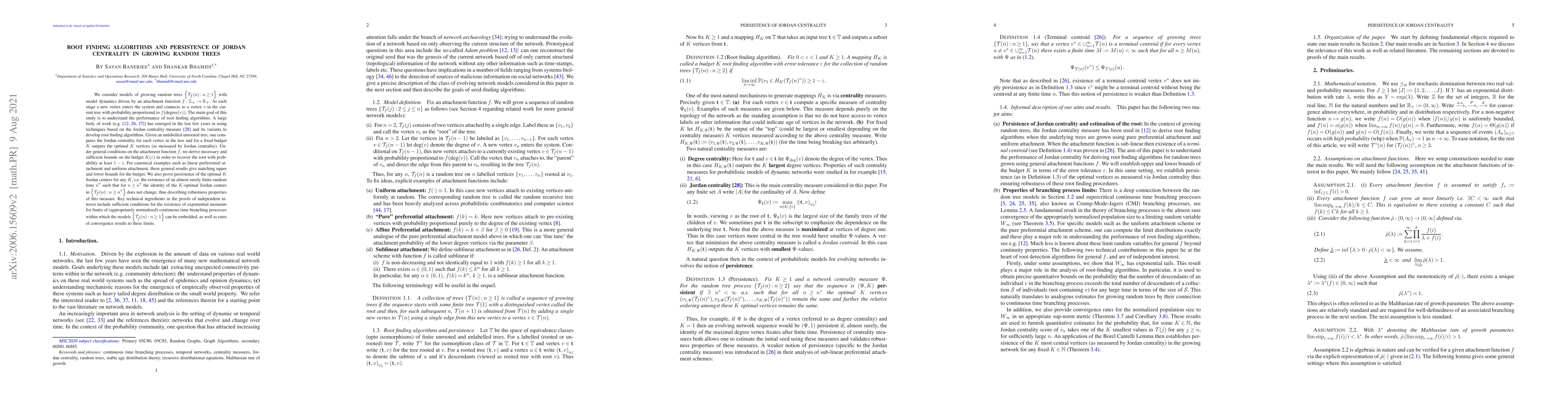 Researchers study growing random trees with attachment functions to understand root finding algorithms using Jordan centrality, deriving bounds on budget for recovering the root and proving persistence of optimal centers.