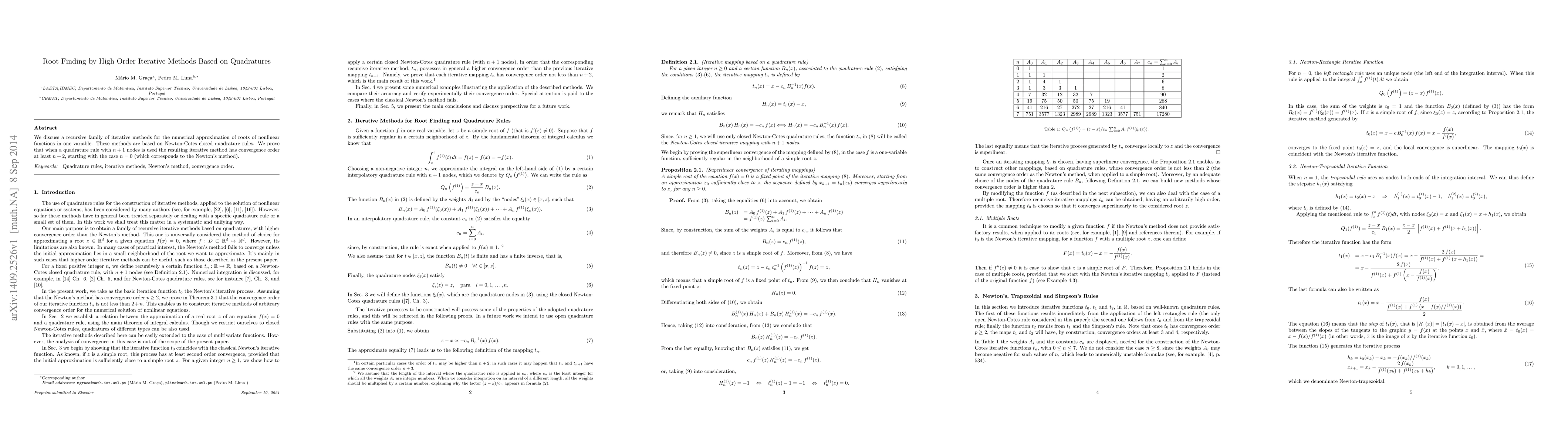 We discuss a recursive family of iterative methods for the numerical approximation of roots of nonlinear functions in one variable. These methods are based on Newton-Cotes closed quadrature rules. We prove that when a quadrature rule with $n+1$ nodes is used the resulting iterative method has convergence order at least $n+2$, starting with the case $n=0$ (which corresponds to the Newton's method).