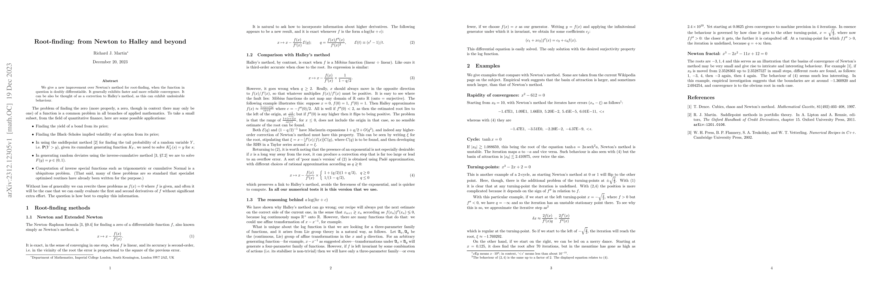 Summary: This paper introduces a refined root-finding method that improves upon Newton's method, offering faster and more reliable convergence for doubly differentiable functions. It also serves as a correction to Halley's method, addressing its potential undesirable behaviors.