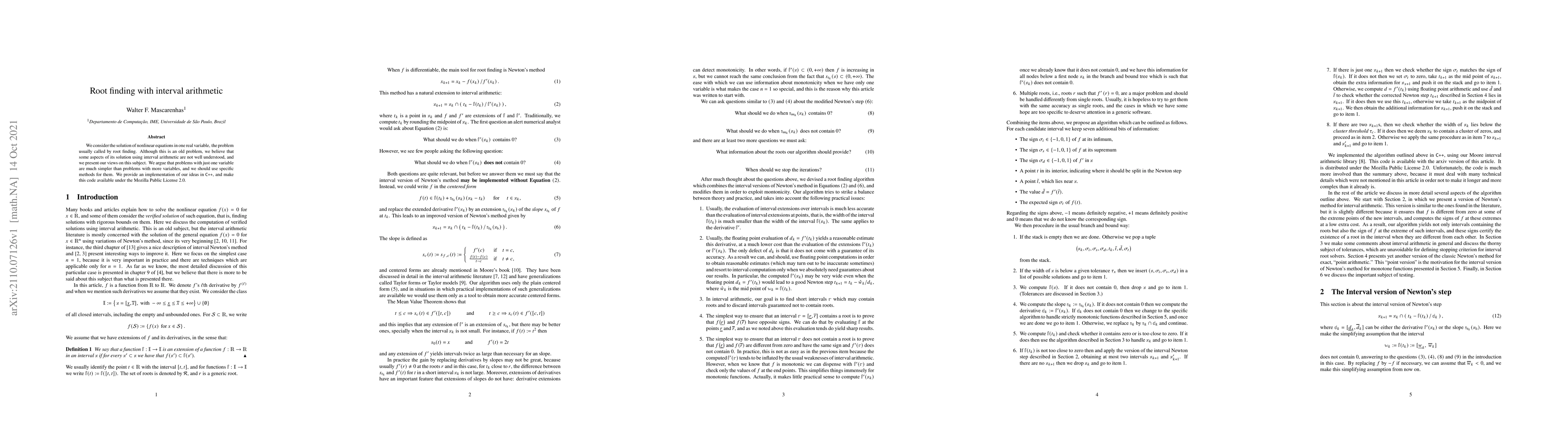 This paper presents a solution to root finding in nonlinear equations with one real variable using interval arithmetic, highlighting its simplicity and providing an implementation in C++.