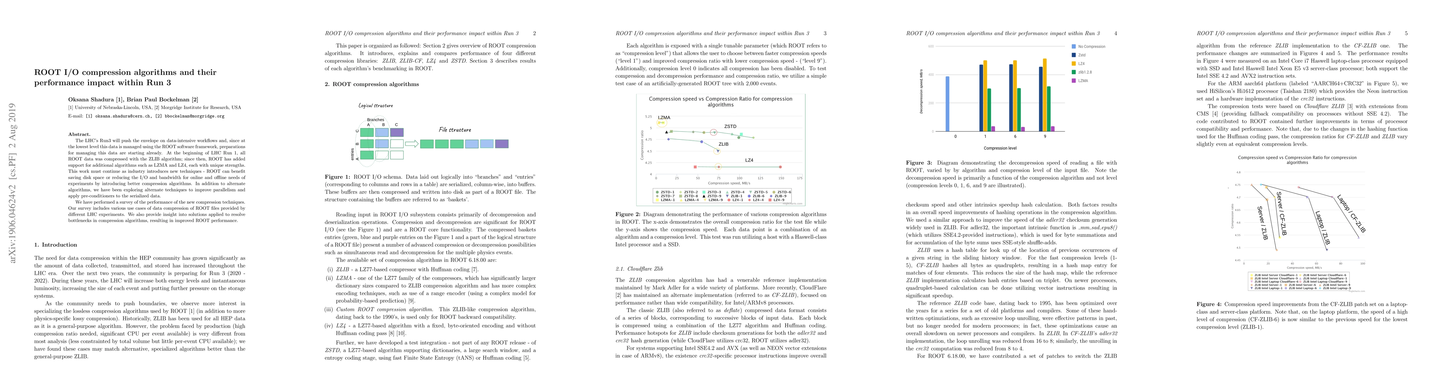 The LHCs Run3 will push the envelope on data-intensive workflows and, since at the lowest level this data is managed using the ROOT software framework, preparations for managing this data are starting already. At the beginning of LHC Run 1, all ROOT data was compressed with the ZLIB algorithm; since then, ROOT has added support for additional algorithms such as LZMA and LZ4, each with unique strengths. This work must continue as industry introduces new techniques - ROOT can benefit saving disk space or reducing the I/O and bandwidth for online and offline needs of experiments by introducing better compression algorithms. In addition to alternate algorithms, we have been exploring alternate techniques to improve parallelism and apply pre-conditioners to the serialized data. We have performed a survey of the performance of the new compression techniques. Our survey includes various use cases of data compression of ROOT files provided by different LHC experiments. We also provide insight into solutions applied to resolve bottlenecks in compression algorithms, resulting in improved ROOT performance.