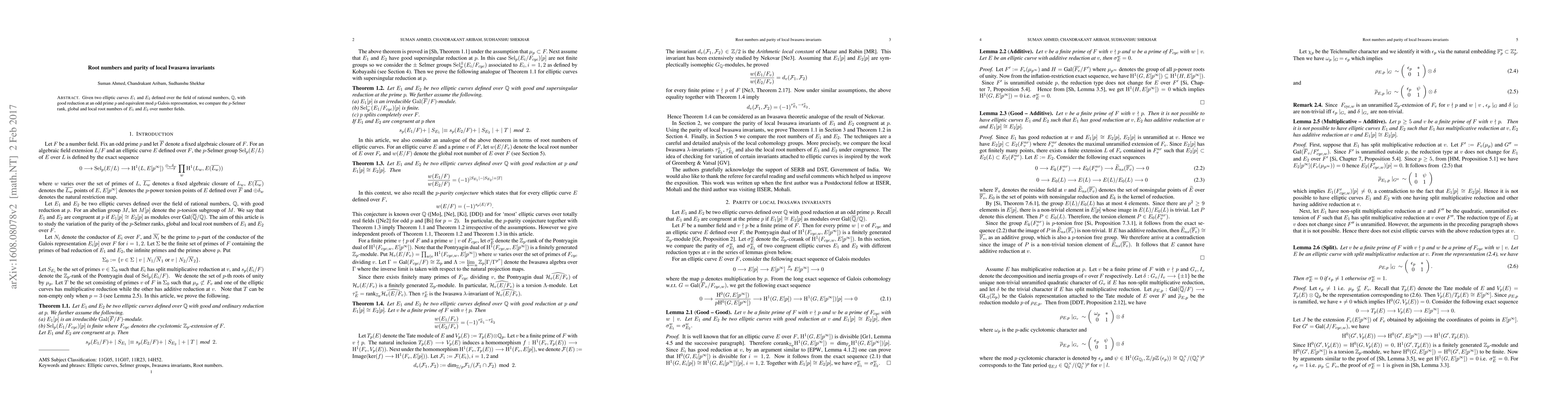 This paper compares the $p$-Selmer rank and local root numbers of two elliptic curves $E_1$ and $E_2$ over number fields, given they have good reduction at an odd prime $p$ and equivalent mod $p$ Galois representations. The focus is on the parity of local Iwasawa invariants.