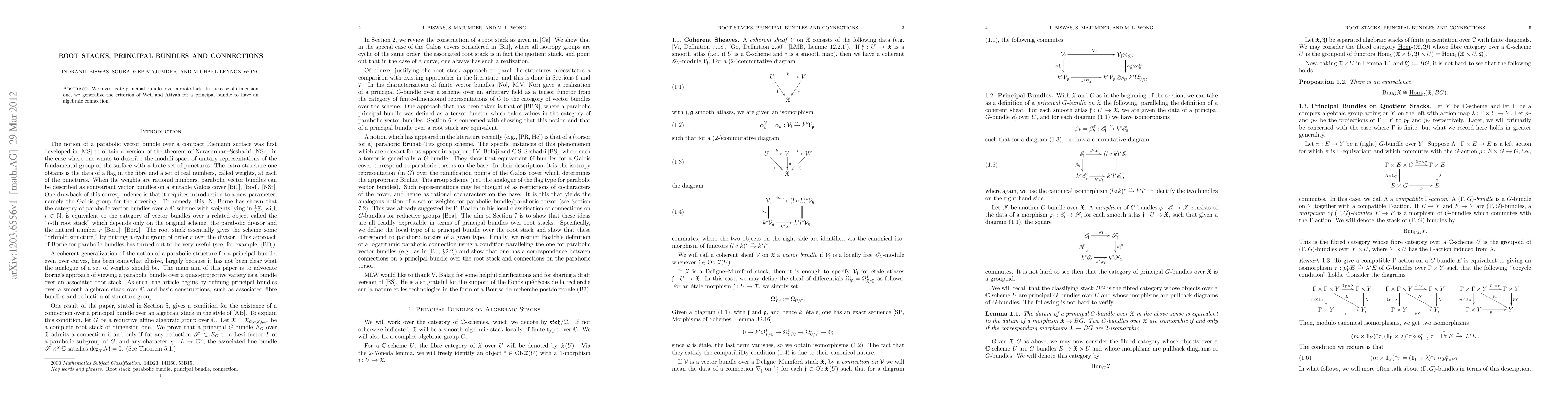 Summary: This paper studies principal bundles over root stacks, extending the Weil and Atiyah criteria for the existence of algebraic connections in the context of dimension one. It provides a generalized criterion for principal bundles on root stacks.