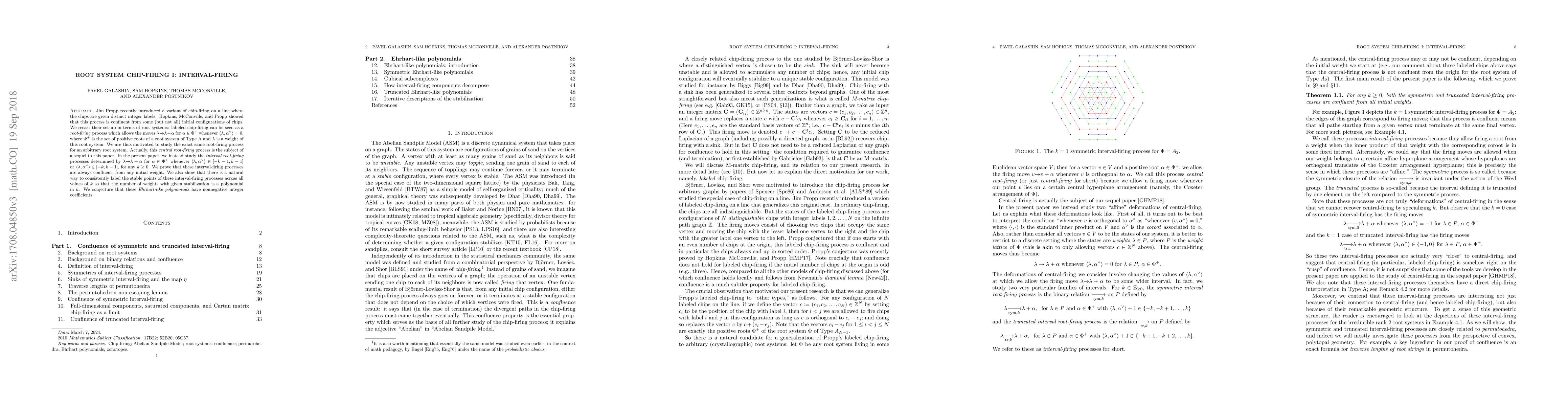 This paper studies a variant of chip-firing on labeled chips as a root-firing process for arbitrary root systems, focusing on interval-firing rules. It proves that interval-firing processes are always confluent and conjectures that associated Ehrhart-like polynomials have nonnegative integer coefficients.