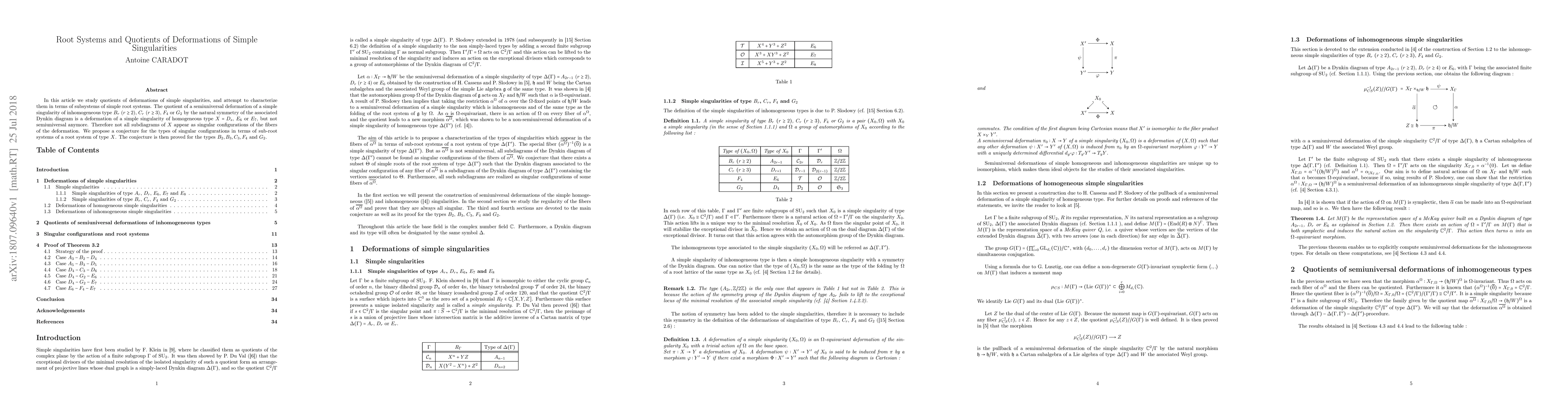 In this article we study quotients of deformations of simple singularities, and attempt to characterize them in terms of subsystems of simple root systems. The quotient of a semiuniversal deformation of a simple singularity of inhomogeneous type $B_r$ ($r \geq 2$), $C_r$ ($r \geq 3$), $F_4$ or $G_2$ by the natural symmetry of the associated Dynkin diagram is a deformation of a simple singularity of homogeneous type $X = D_s$, $E_6$ or $E_7$, but not semiuniversal anymore. Therefore not all subdiagrams of $X$ appear as singular configurations of the fibers of the deformation. We propose a conjecture for the types of singular configurations in terms of sub-root systems of a root system of type $X$. The conjecture is then proved for the types $B_2$, $B_3$, $C_3$, $F_4$ and $G_2$.