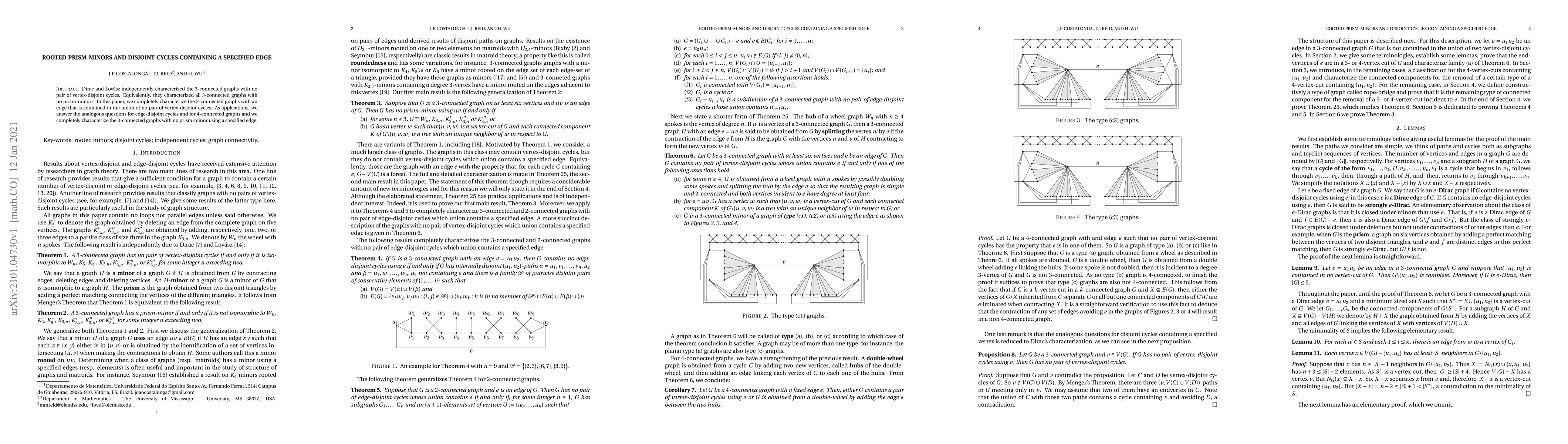Dirac and Lov\'{a}sz independently characterized the $3$-connected graphs with no pair of vertex-disjoint cycles. Equivalently, they characterized all $3$-connected graphs with no prism-minors. In this paper, we completely characterize the $3$-connected graphs with an edge that is contained in the union of no pair of vertex-disjoint cycles. As applications, we answer the analogous questions for edge-disjoint cycles and for $4$-connected graphs and we completely characterize the $3$-connected graphs with no prism-minor using a specified edge.