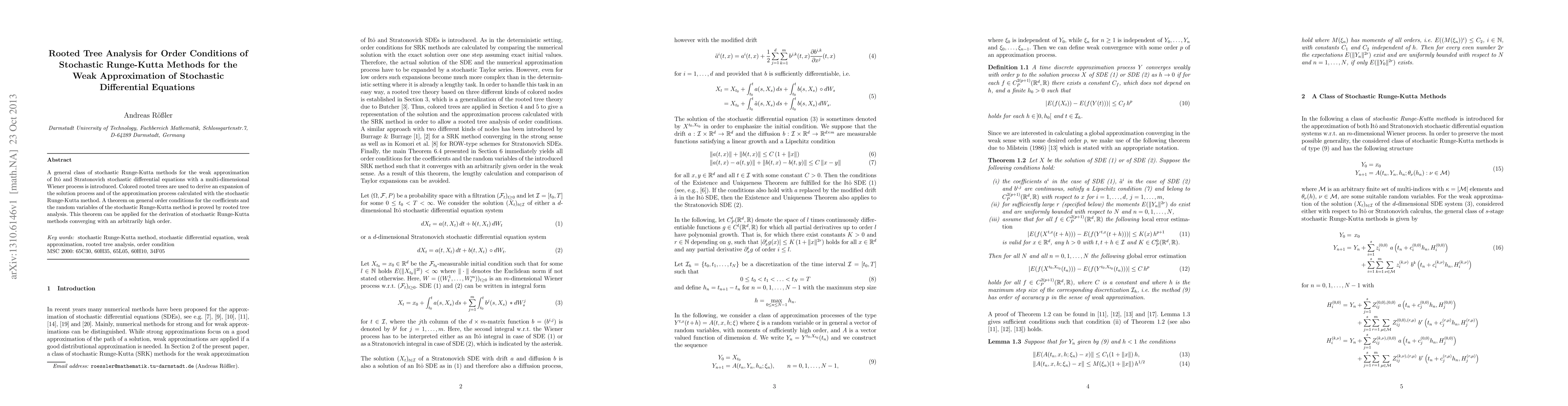 Title: Rooted Tree Analysis for Order Conditions of Stochastic Runge-Kutta Methods for Weak Approximation of Stochastic Differential Equations Summary: The paper introduces stochastic Runge-Kutta methods for approximating Itô and Stratonovich stochastic differential equations, employing rooted tree analysis to derive order conditions for the methods' coefficients and random variables, enabling the development of high-order convergence.
