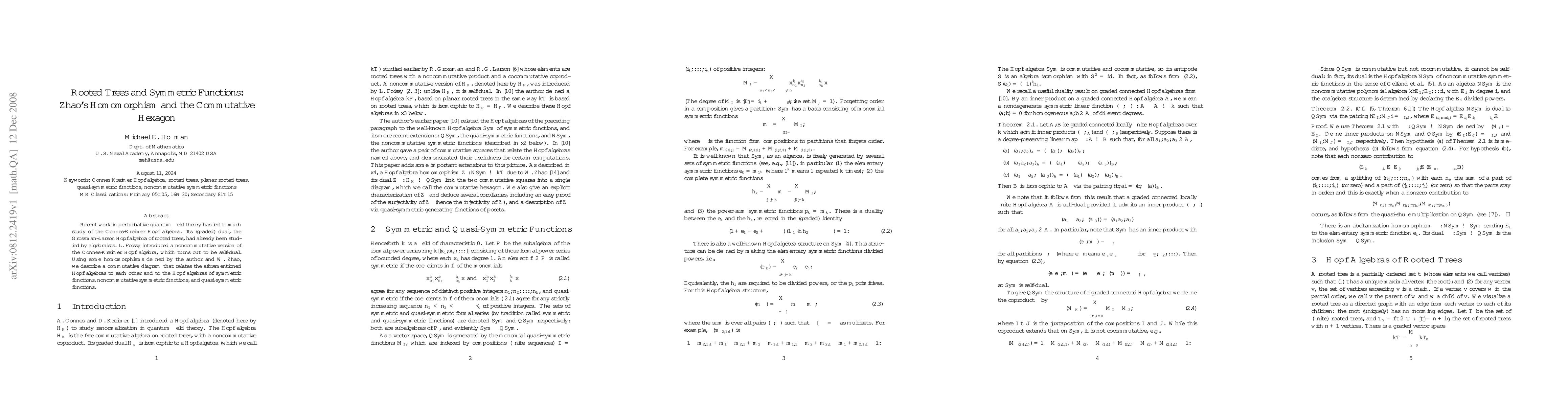 Summary: This paper explores connections between Hopf algebras of rooted trees, symmetric functions, and their noncommutative counterparts using homomorphisms introduced by the author and W. Zhao, establishing a commutative diagram that links these structures.