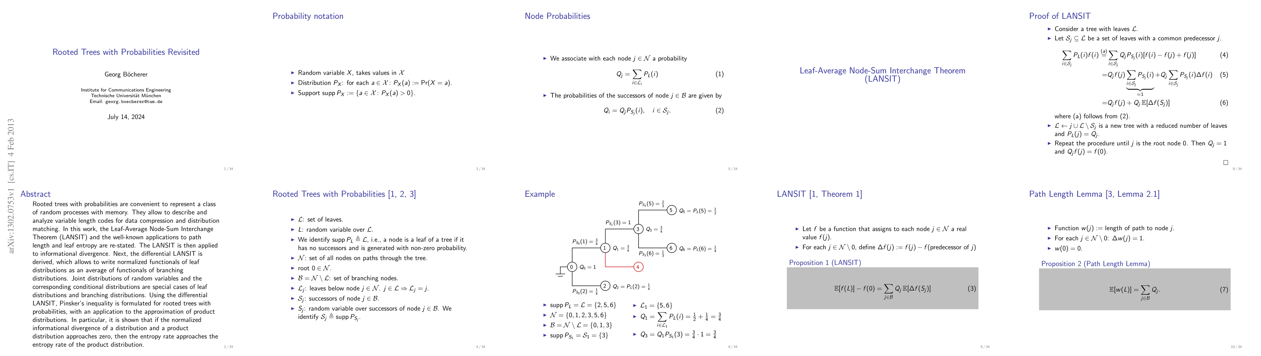 This paper revisits rooted trees with probabilities to represent random processes with memory, focusing on the Leaf-Average Node-Sum Interchange Theorem (LANSIT). It applies LANSIT to informational divergence and derives a differential LANSIT, which facilitates the approximation of product distributions and demonstrates Pinsker's inequality for entropy rates.
