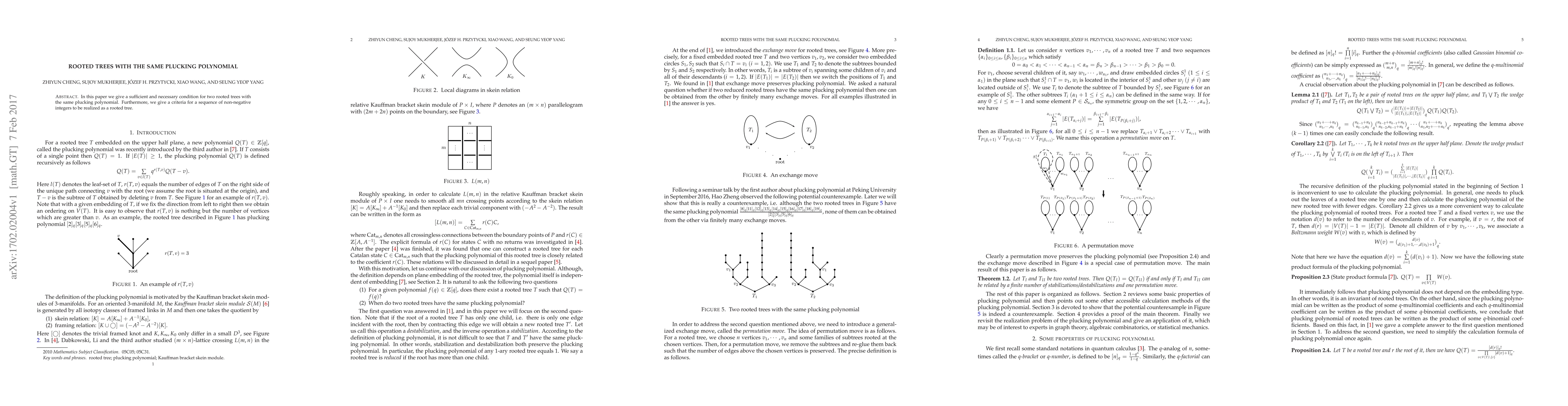 Summary: This paper establishes a necessary and sufficient condition for two rooted trees to share the same plucking polynomial and provides criteria for a sequence of non-negative integers to correspond to a rooted tree.