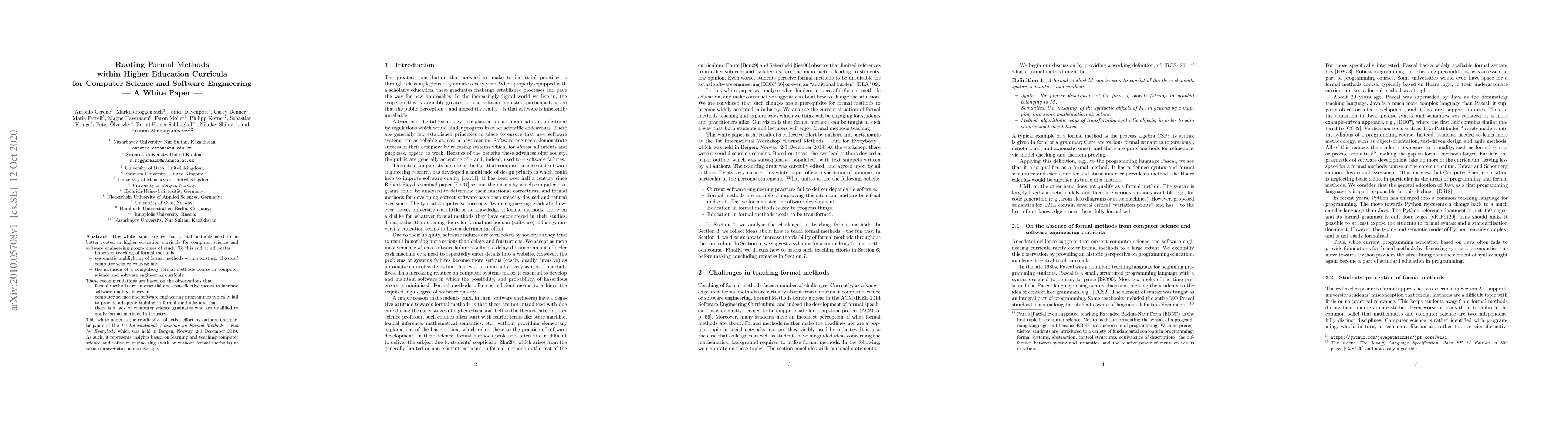 This white paper advocates for integrating formal methods into higher education curricula for computer science and software engineering, recommending enhanced teaching, systematic inclusion in existing courses, and a compulsory course to address the industry's need for qualified graduates. It stems from insights gathered at the 1st International Workshop on "Formal Methods, Fun for Everybody."