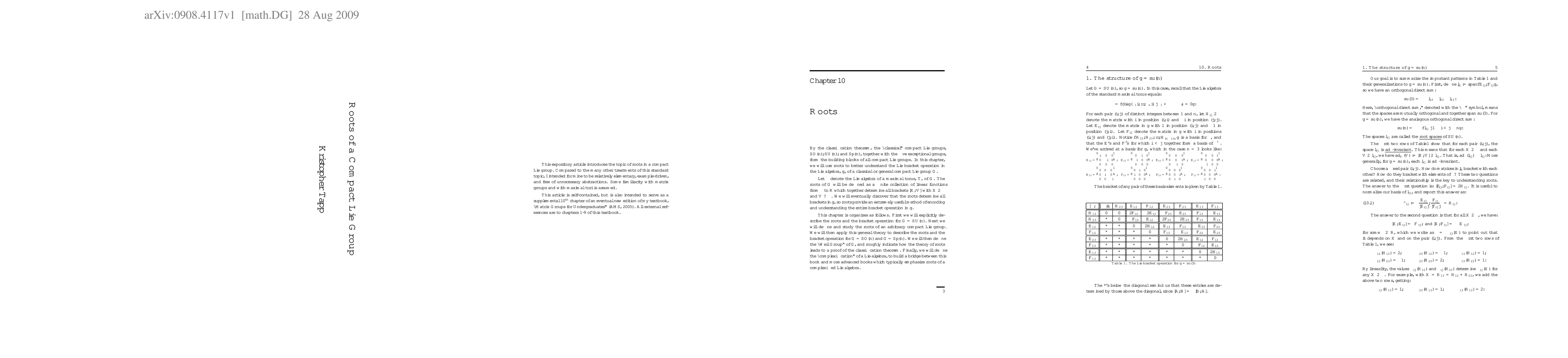 This expository article introduces the topic of roots in a compact Lie group. Compared to the many other treatments of this standard topic, I intended for mine to be relatively elementary, example-driven, and free of unnecessary abstractions. Some familiarity with matrix groups and with maximal tori is assumed. This article is self-contained, but is also intended to serve as a supplemental 10th chapter of an eventual new edition of my textbook, ``Matrix Groups for Undergraduates.''