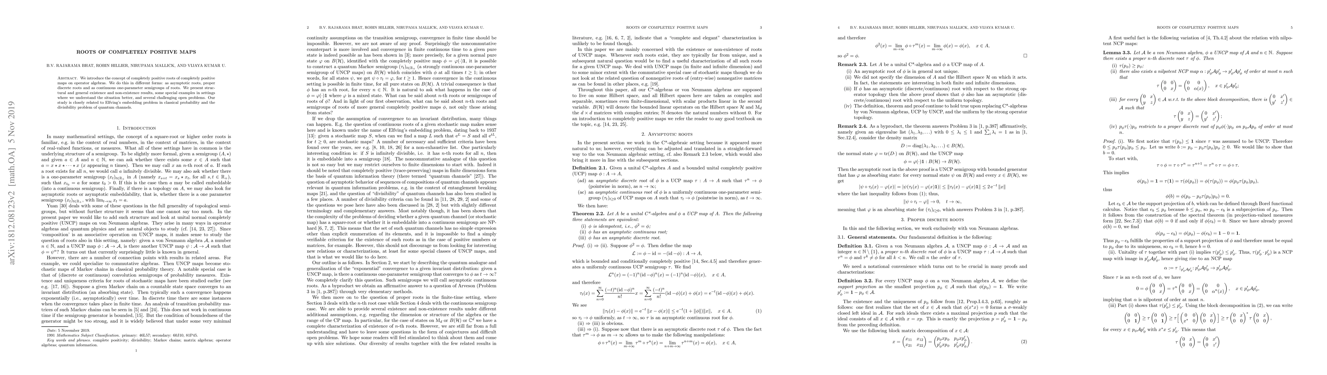 The paper introduces the concept of completely positive roots of completely positive maps on operator algebras, presented in different forms such as asymptotic roots, proper discrete roots, and as continuous one-parameter semigroups of roots. It provides structural results, existence and non-existence theorems, special examples, and open problems.
