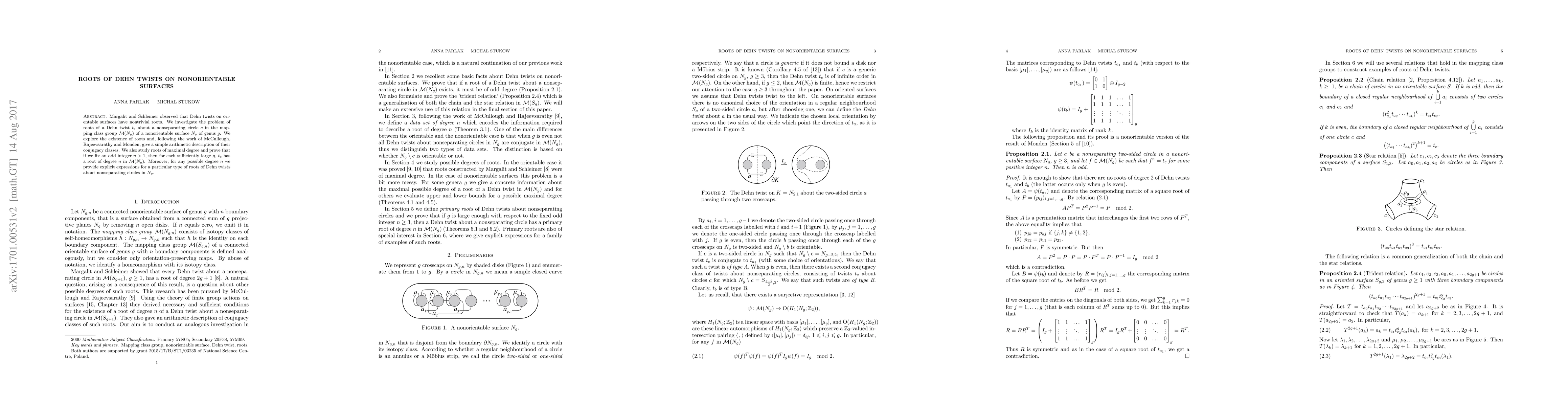 This paper investigates Dehn twists on nonorientable surfaces, focusing on their roots within the mapping class group. It provides an arithmetic description of these roots' conjugacy classes and proves the existence of roots of any fixed odd degree for sufficiently large genus surfaces, along with explicit expressions for these roots.