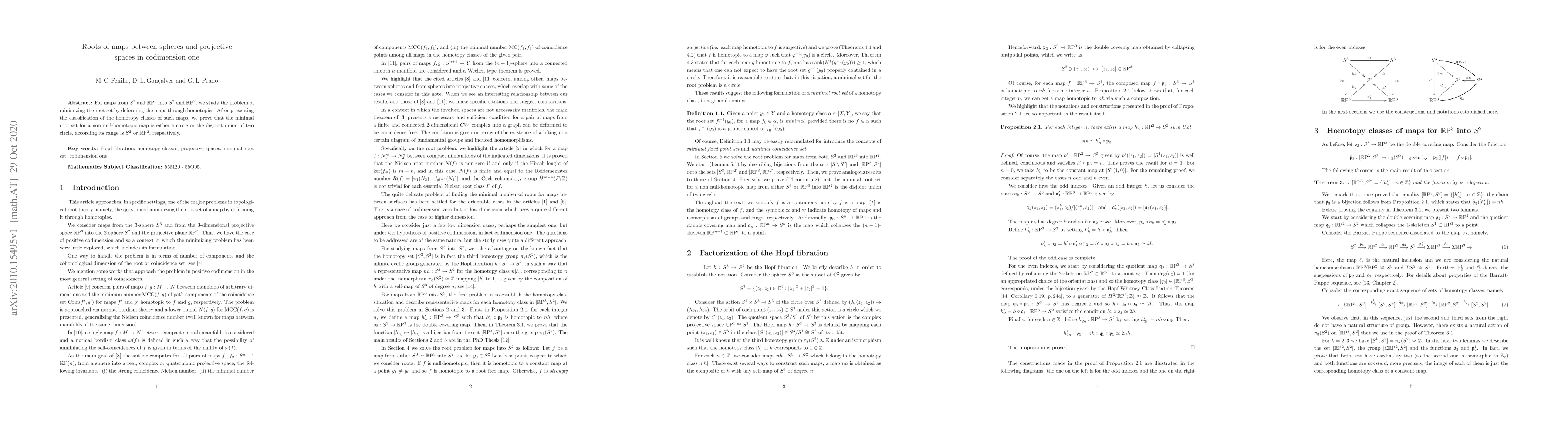For maps from $S^3$ and $\RP^3$ into $S^2$ and $\RP^2$, we study the problem of minimizing the root set by deforming the maps through homotopies. After presenting the classification of the homotopy classes of such maps, we prove that the minimal root set for a non null-homotopic map is either a circle or the disjoint union of two circle, according its range is $S^2$ or $\RP^2$, respectively.