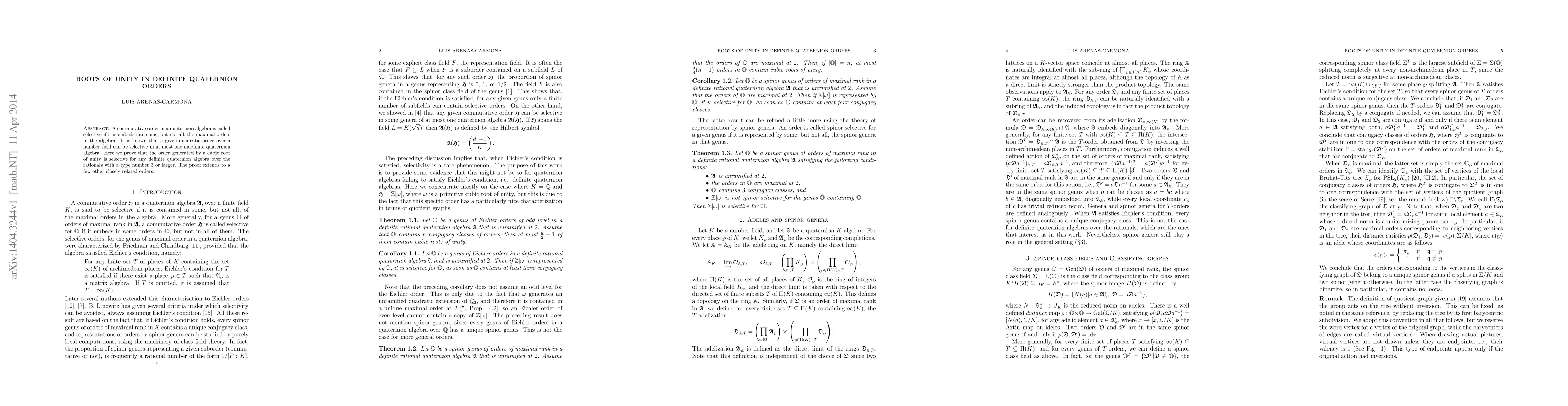 This paper proves that a quaternion order generated by a cubic root of unity is selective for definite quaternion algebras over the rationals with a type number of 3 or larger. The proof also extends to some related orders, establishing their selective nature in specific quaternion algebras.