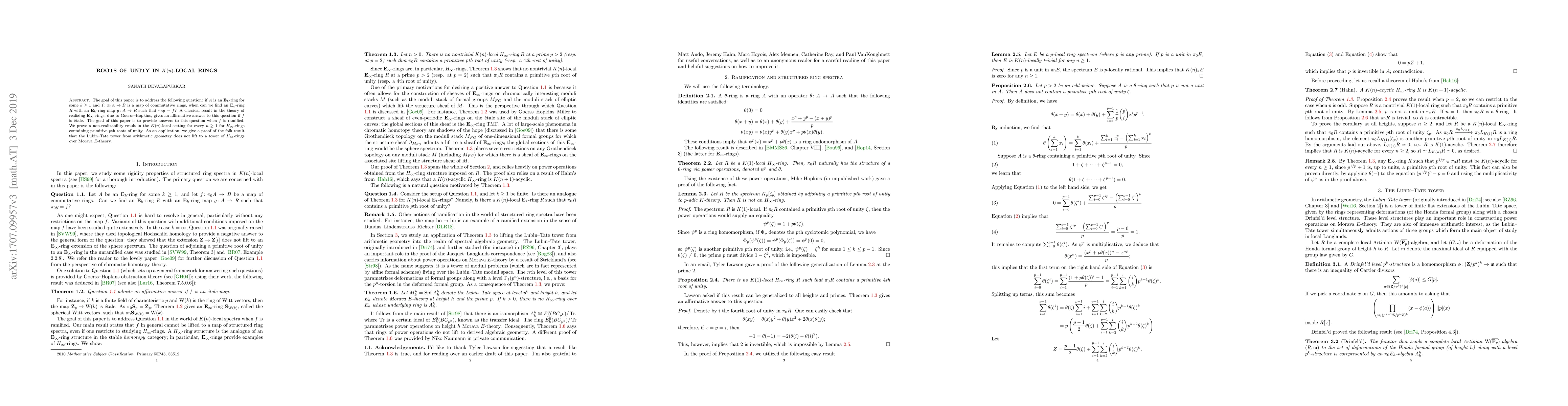 The goal of this paper is to address the following question: if $A$ is an $\mathbf{E}_{k}$-ring for some $k\geq 1$ and $f\colon\pi_0 A \to B$ is a map of commutative rings, when can we find an $\mathbf{E}_{k}$-ring $R$ with an $\mathbf{E}_{k}$-ring map $g\colon A \to R$ such that $\pi_0 g = f$? A classical result in the theory of realizing $\mathbf{E}_\infty$-rings, due to Goerss--Hopkins, gives an affirmative answer to this question if $f$ is etale. The goal of this paper is to provide answers to this question when $f$ is ramified. We prove a non-realizability result in the $K(n)$-local setting for every $n\geq 1$ for $H_\infty$-rings containing primitive $p$th roots of unity. As an application, we give a proof of the folk result that the Lubin--Tate tower from arithmetic geometry does not lift to a tower of $H_\infty$-rings over Morava $E$-theory.