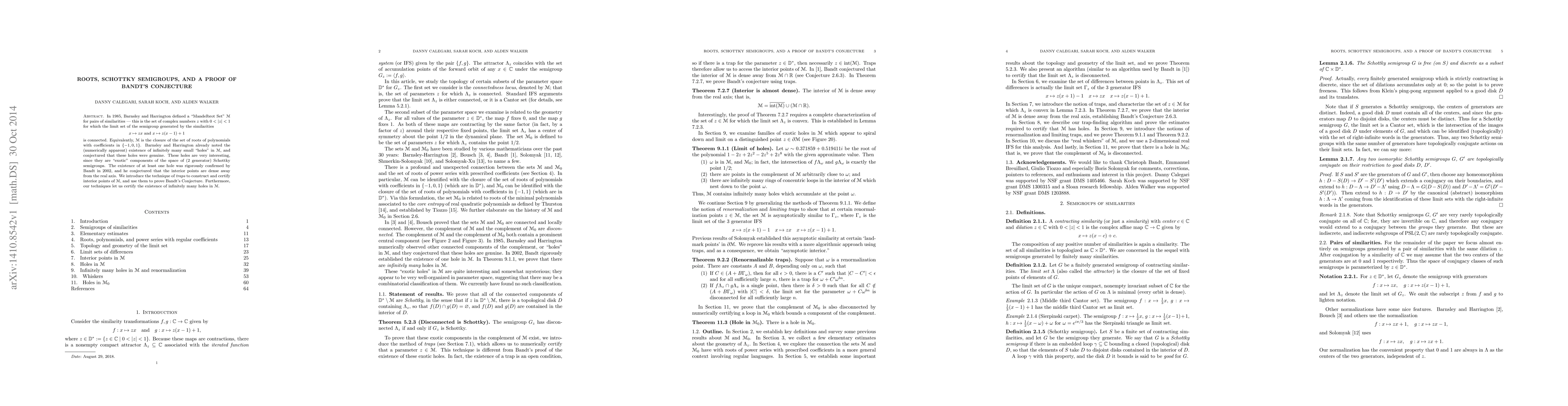 In 1985, Barnsley and Harrington defined a ``Mandelbrot Set'' $\mathcal{M}$ for pairs of similarities --- this is the set of complex numbers $z$ with $0<|z|<1$ for which the limit set of the semigroup generated by the similarities $x \mapsto zx$ and $x \mapsto z(x-1)+1$ is connected. Equivalently, $\mathcal{M}$ is the closure of the set of roots of polynomials with coefficients in $\lbrace -1,0,1 \rbrace$. Barnsley and Harrington already noted the (numerically apparent) existence of infinitely many small ``holes'' in $\mathcal{M}$, and conjectured that these holes were genuine. These holes are very interesting, since they are ``exotic'' components of the space of (2 generator) Schottky semigroups. The existence of at least one hole was rigorously confirmed by Bandt in 2002, and he conjectured that the interior points are dense away from the real axis. We introduce the technique of traps to construct and certify interior points of $\mathcal{M}$, and use them to prove Bandt's Conjecture. Furthermore, our techniques let us certify the existence of infinitely many holes in $\mathcal{M}$.