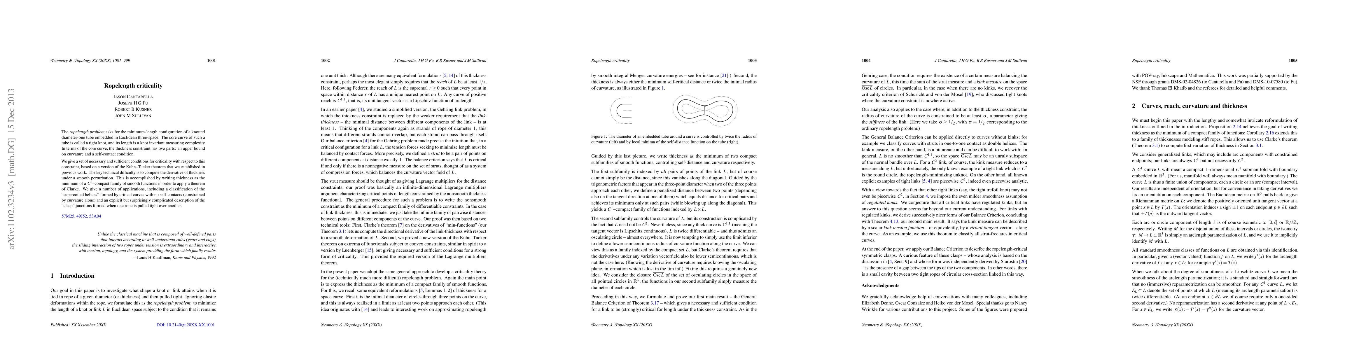 The ropelength problem asks for the minimum-length configuration of a knotted diameter-one tube embedded in Euclidean three-space. The core curve of such a tube is called a tight knot, and its length is a knot invariant measuring complexity. In terms of the core curve, the thickness constraint has two parts: an upper bound on curvature and a self-contact condition. We give a set of necessary and sufficient conditions for criticality with respect to this constraint, based on a version of the Kuhn-Tucker theorem that we established in previous work. The key technical difficulty is to compute the derivative of thickness under a smooth perturbation. This is accomplished by writing thickness as the minimum of a $C^1$-compact family of smooth functions in order to apply a theorem of Clarke. We give a number of applications, including a classification of the "supercoiled helices" formed by critical curves with no self-contacts (constrained by curvature alone) and an explicit but surprisingly complicated description of the "clasp" junctions formed when one rope is pulled tight over another.