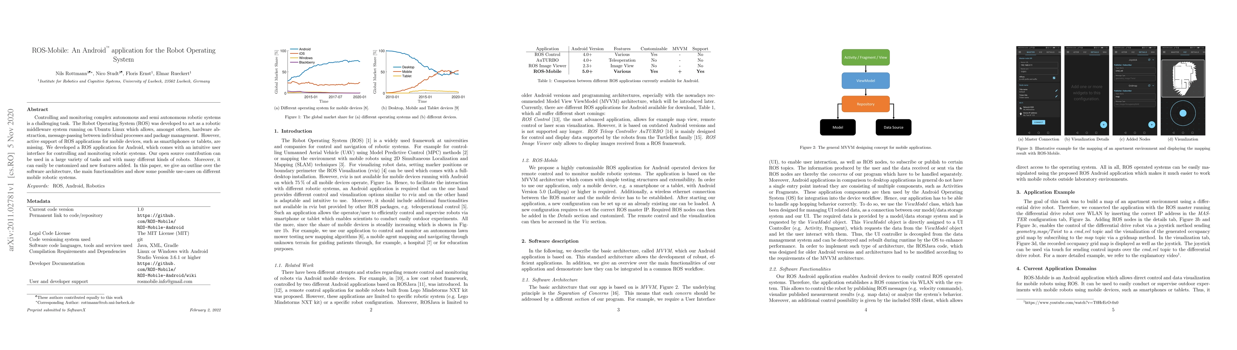 This paper presents ROS-Mobile, an Android application enabling control and monitoring of robotic systems using the Robot Operating System (ROS). It addresses the lack of mobile support for ROS, offering an intuitive interface and open source customization for various robotic applications.