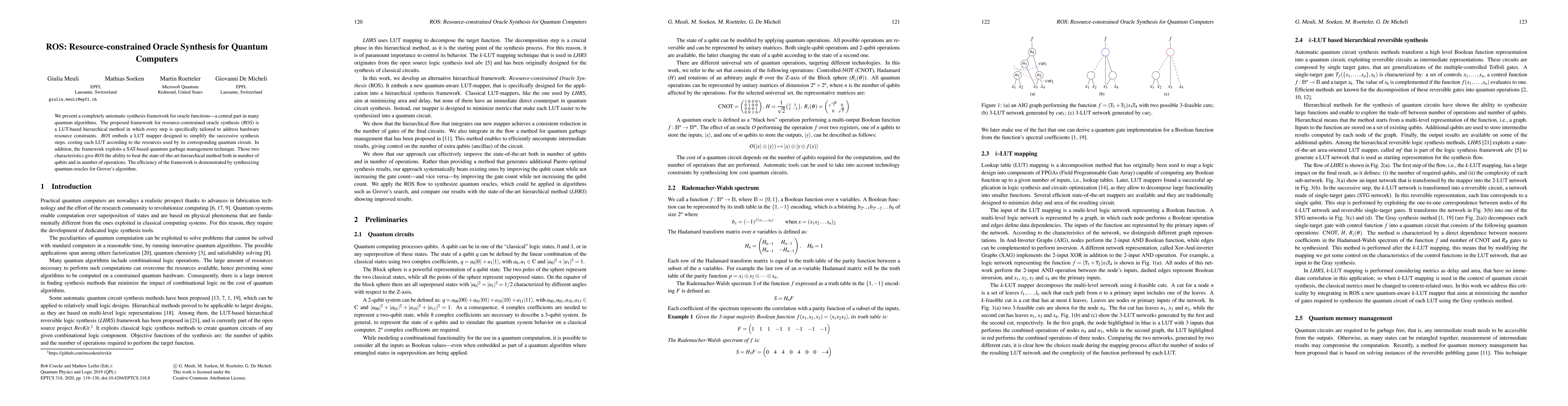 The ROS framework automates the synthesis of oracle functions for quantum computers, employing a LUT-based hierarchical method tailored to minimize hardware resource usage. It outperforms existing methods in both qubit and operation counts, as demonstrated by its application in synthesizing quantum oracles for Grover's algorithm.