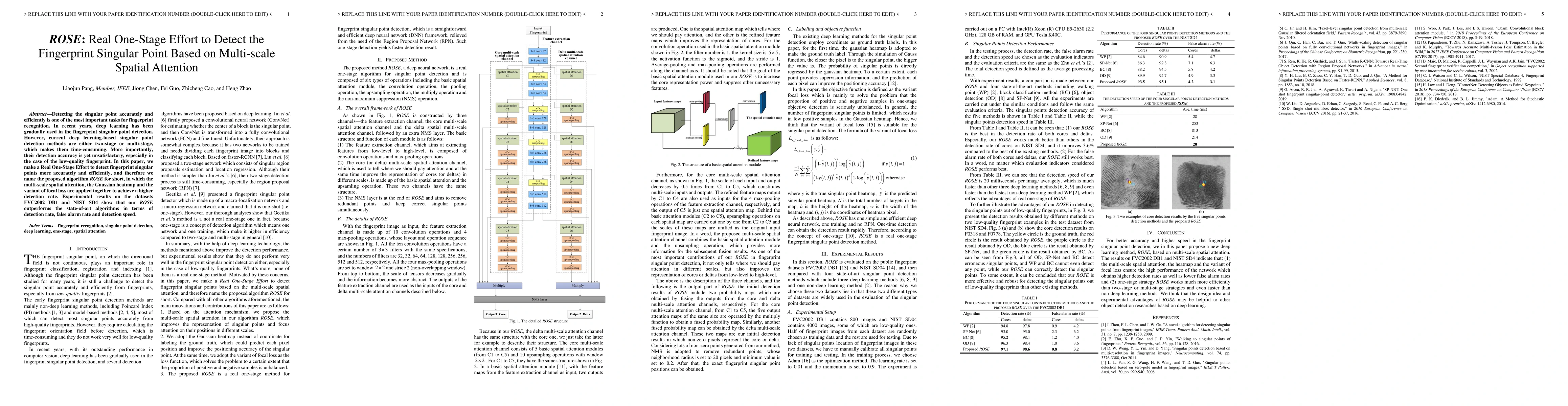 Detecting the singular point accurately and efficiently is one of the most important tasks for fingerprint recognition. In recent years, deep learning has been gradually used in the fingerprint singular point detection. However, current deep learning-based singular point detection methods are either two-stage or multi-stage, which makes them time-consuming. More importantly, their detection accuracy is yet unsatisfactory, especially in the case of the low-quality fingerprint. In this paper, we make a Real One-Stage Effort to detect fingerprint singular points more accurately and efficiently, and therefore we name the proposed algorithm ROSE for short, in which the multi-scale spatial attention, the Gaussian heatmap and the variant of focal loss are applied together to achieve a higher detection rate. Experimental results on the datasets FVC2002 DB1 and NIST SD4 show that our ROSE outperforms the state-of-art algorithms in terms of detection rate, false alarm rate and detection speed.