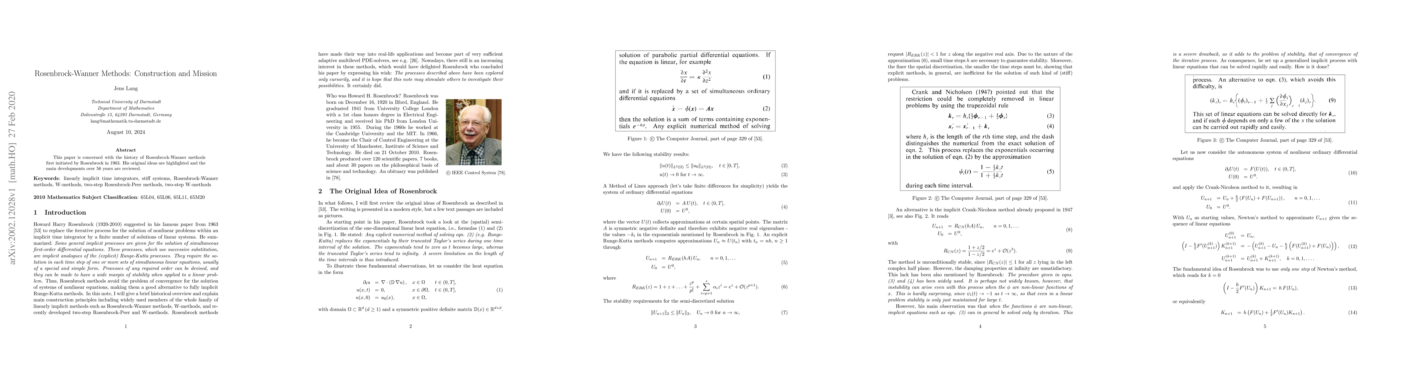 This paper is concerned with the history of Rosenbrock-Wanner methods first initiated by Rosenbrock in 1963. His original ideas are highlighted and the main developments over 56 years are reviewed.