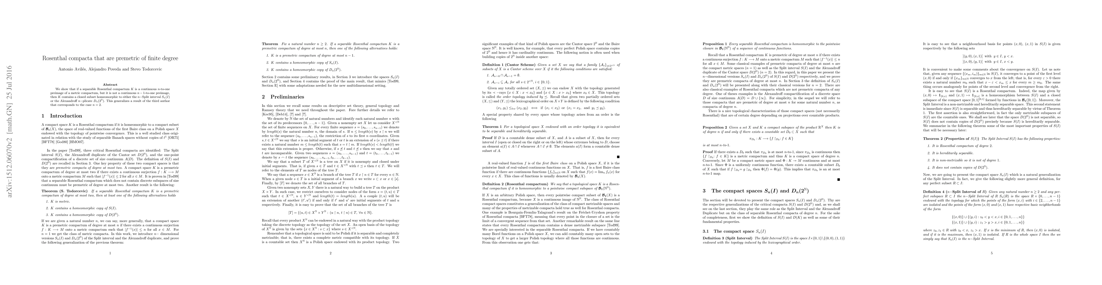 This paper demonstrates that a separable Rosenthal compactum $K$ that is an $n$-to-one preimage of a metric compactum but not an $(n-1)$-to-one preimage contains a closed subset homeomorphic to either the $n$-Split interval $S_n(I)$ or the Alexandroff $n$-plicate $D_n(2^\mathbb{N})$. This generalizes a prior result for $n=2$.
