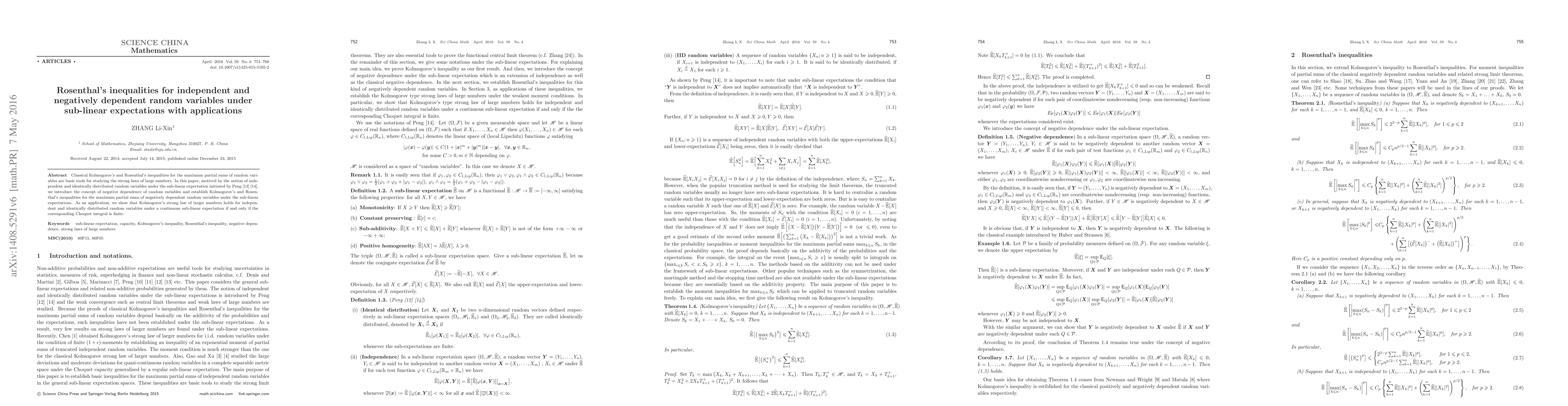 The paper introduces and proves Rosenthal's inequalities for negatively dependent random variables under sub-linear expectations, extending classical results to this new framework.