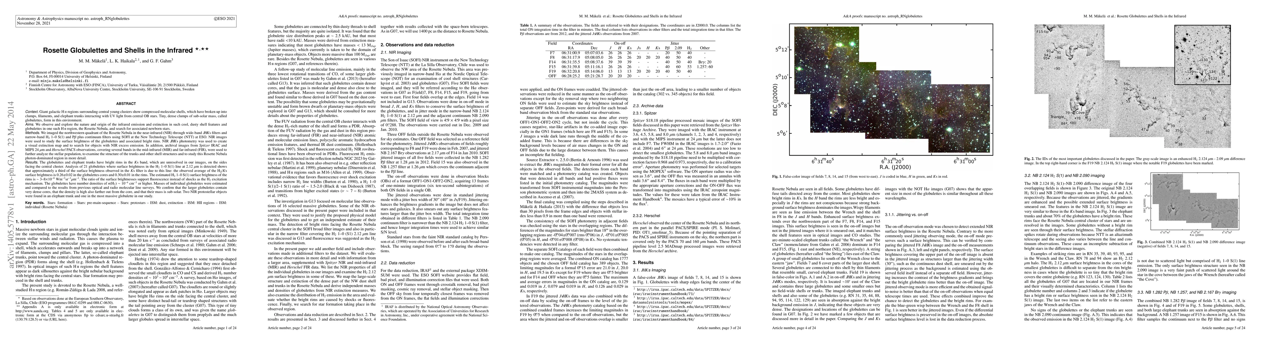 Tiny, dense clumps of sub-solar mass called globulettes form in giant galactic HII regions. The young central clusters compress the surrounding molecular shells which break up into clumps, filaments, and elephant trunks that interact with UV light from the central OB stars. We study the nature of the infrared emission and extinction in the shell and globulettes in the Rosette Nebula (RN) and search for associated newborn stars. We imaged the northwestern quadrant of the RN in the near-infrared (NIR) through JHKs and narrow-band H2 1-0 S(1), Pbeta and continuum filters. NIR images were used to study the surface brightness of the globulettes and associated bright rims. NIR photometry was used to create an extinction map and to search for NIR excess objects. Archival images from Spitzer IRAC and MIPS 24 and Herschel PACS observations were used to further study the region and its stellar population and to examine the structure of the shell and trunks. The globulettes and elephant trunks have bright rims in the Ks band on the sides facing the central cluster. Analysis of 21 globulettes where surface brightness in the H2 1-0 S(1) line is detected shows that about a third of the surface brightness observed in Ks is due to this line: the observed average of the H2/Ks surface brightness is 0.26+-0.02 in the globulettes cores and 0.30+-0.01 in the rims. The estimated H2 1-0 S(1) surface brightness of the rims is 3-8*10^{-8} Wm^{-2}sr^{-1}um^{-1}. The H2/Ks surface brightness ratio supports fluorescence as the H2 excitation mechanism. The globulettes have number densities of n(H2)~10^{-4} cm^{-3} or higher. We confirm the results from previous optical and CO surveys that the larger globulettes contain very dense cores and dense envelopes, and that their masses are sub-solar. Two NIR protostellar objects were found in an elephant trunk and one in the most massive globulette in our study. (abridged)