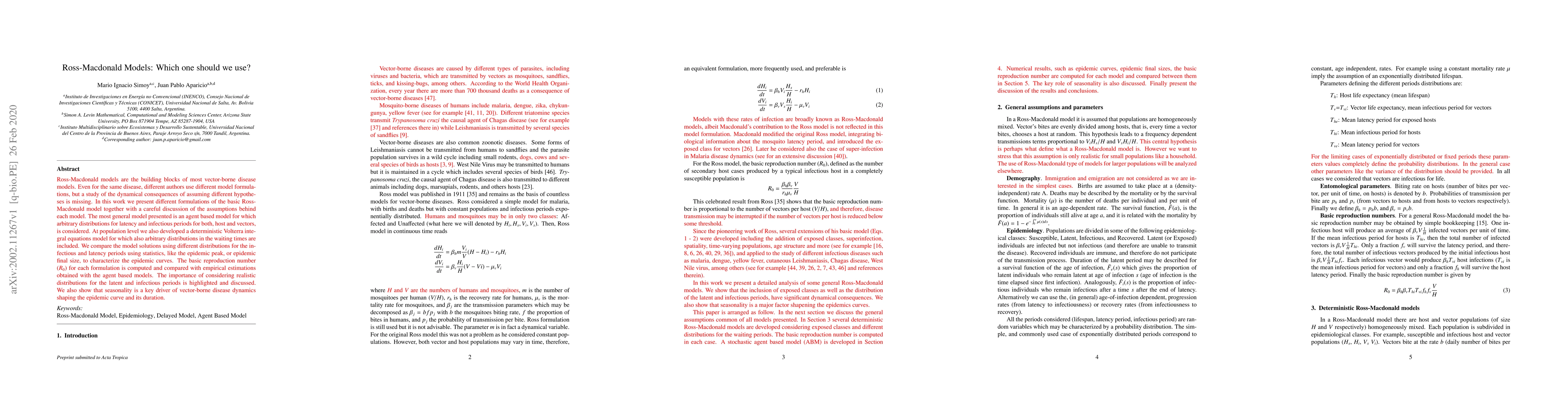 This paper presents various Ross-Macdonald model formulations for vector-borne diseases, emphasizing the impact of latency, infectious period distributions, and seasonality on epidemic curves. Comparisons reveal the importance of realistic distribution assumptions for model accuracy and the significant role of seasonality in shaping disease dynamics.