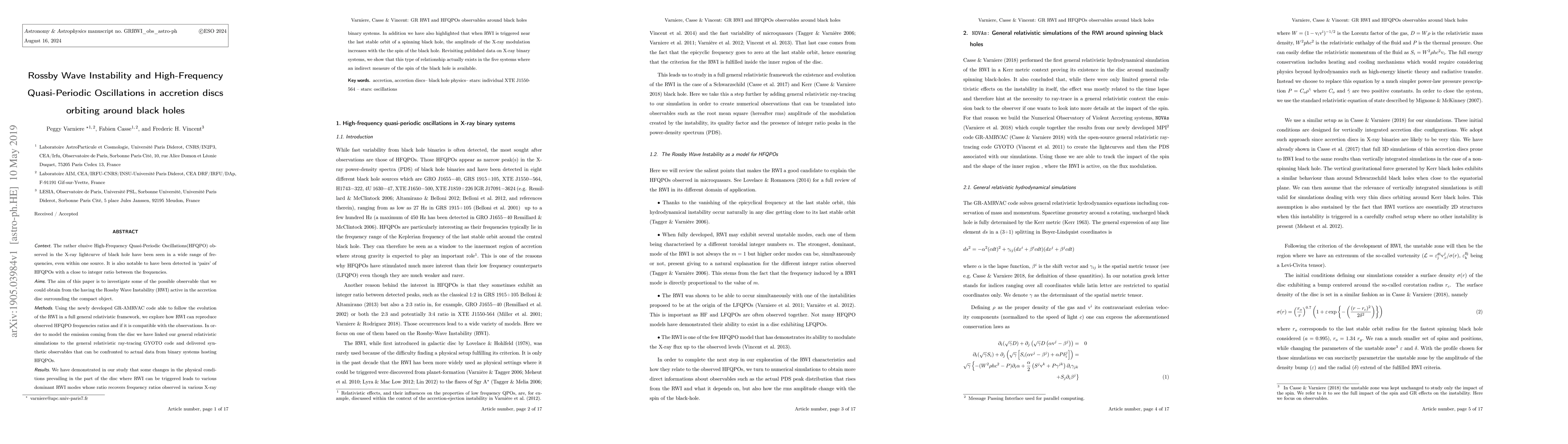 This paper investigates the Rossby Wave Instability (RWI) in accretion discs around black holes to explain High-Frequency Quasi-Periodic Oscillations (HFQPO) in X-ray lightcurves. The study shows that RWI can reproduce observed HFQPO frequency ratios and correlates with the spin of the black hole, increasing X-ray modulation amplitude with higher spin, consistent with observed data from X-ray binary systems.