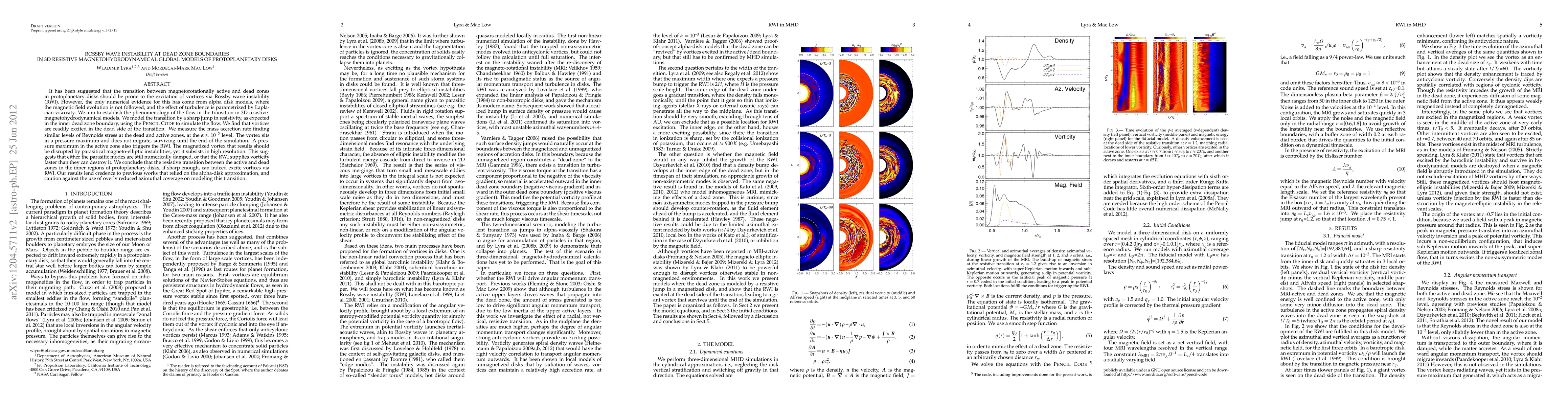 It has been suggested that the transition between magnetorotationally active and dead zones in protoplanetary disks should be prone to the excitation of vortices via Rossby wave instability (RWI). However, the only numerical evidence for this has come from alpha disk models, where the magnetic field evolution is not followed, and the effect of turbulence is parametrized by Laplacian viscosity. We aim to establish the phenomenology of the flow in the transition in 3D resistive-magnetohydrodynamical models. We model the transition by a sharp jump in resistivity, as expected in the inner dead zone boundary, using the Pencil Code to simulate the flow. We find that vortices are readily excited in the dead side of the transition. We measure the mass accretion rate finding similar levels of Reynolds stress at the dead and active zones, at the $\alpha\approx 10^{-2}$ level. The vortex sits in a pressure maximum and does not migrate, surviving until the end of the simulation. A pressure maximum in the active zone also triggers the RWI. The magnetized vortex that results should be disrupted by parasitical magneto-elliptic instabilities, yet it subsists in high resolution. This suggests that either the parasitic modes are still numerically damped, or that the RWI supplies vorticity faster than they can destroy it. We conclude that the resistive transition between the active and dead zones in the inner regions of protoplanetary disks, if sharp enough, can indeed excite vortices via RWI. Our results lend credence to previous works that relied on the alpha-disk approximation, and caution against the use of overly reduced azimuthal coverage on modeling this transition.