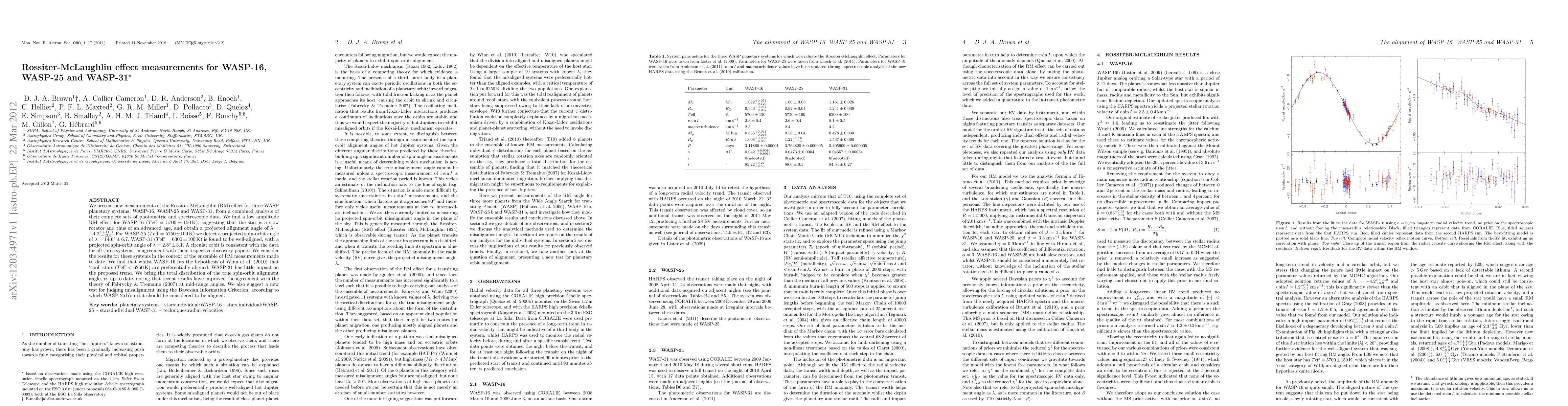 This paper reports new Rossiter-McLaughlin effect measurements for three WASP planetary systems, finding low amplitude for WASP-16 indicating a slow rotator, a spin-orbit angle for WASP-25, and alignment for WASP-31. The results support the trend of cooler stars being preferentially aligned but suggest further refinement is needed.
